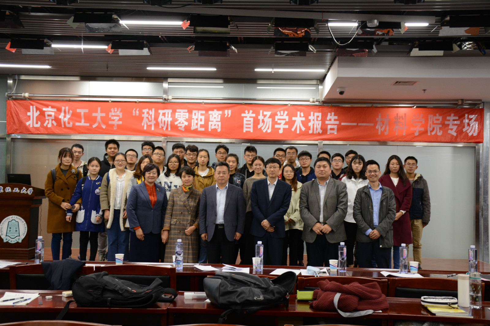 10月16日晚,由研究生院、学生工作办公室主办的“科研零距离”系列学术报告活动的首场报告(材料学院专场)在昌平校区图书馆五层学术报告厅举行。校党委副书记、研究生院院长甘志华,材料学院党委书记赵静、院长张立群,学工办副主任李浚,材料学院党委副书记李承明,研招办主任吕营以及材料学院200余名大三学生参加活动。报告会由校党委副书记甘志华主持。