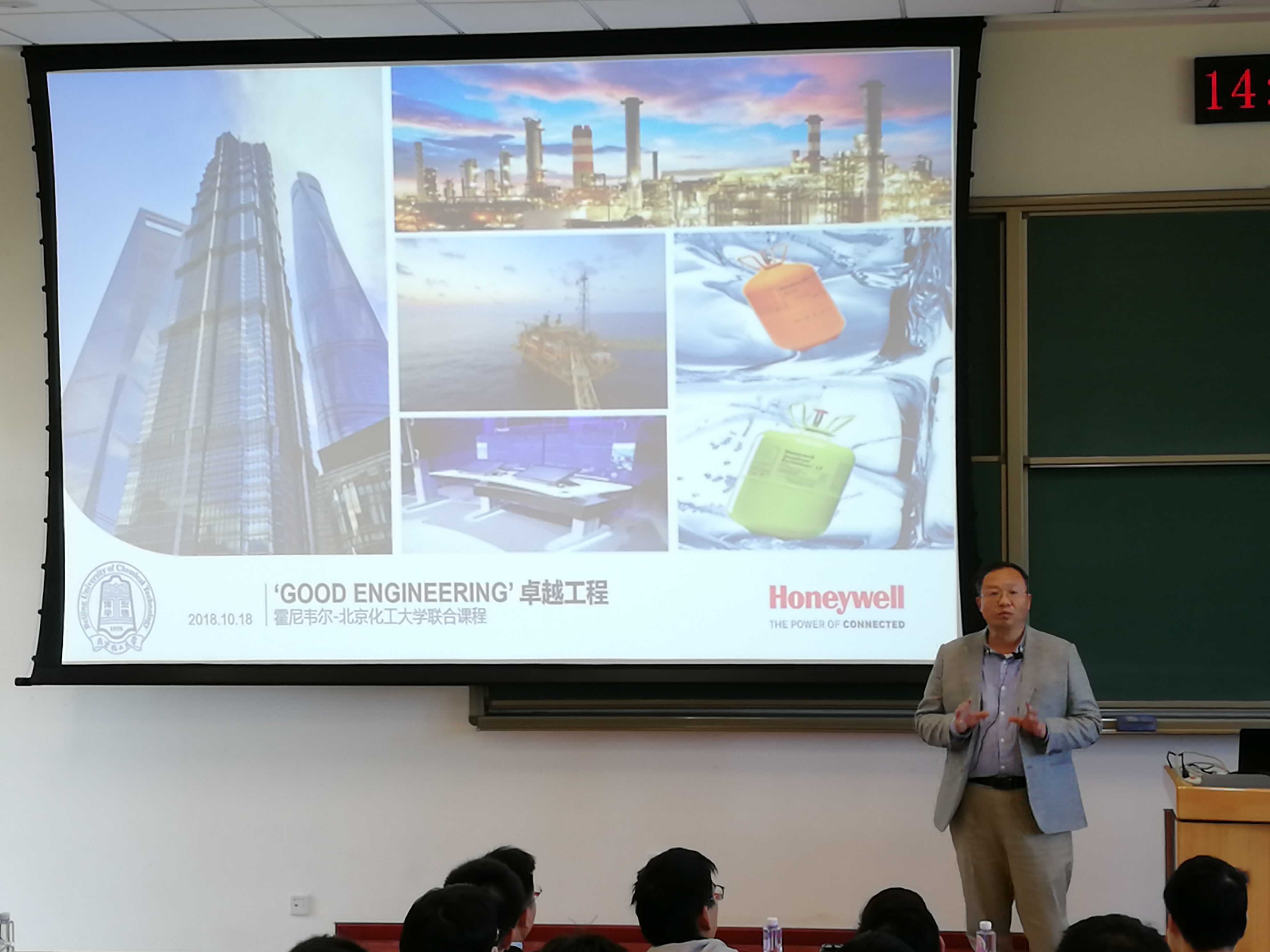 10月18日下午,《Good Engineering》开课暨企业导师聘任仪式在昌平校区B座教学楼举行。任钟旗副校长、霍尼韦尔公司科技事业部首席技术官周麓波博士、教务处郎海涛副处长、霍尼韦尔公司科技事业部中国区学习与人才发展部张娇娜经理及师生代表参加了仪式。