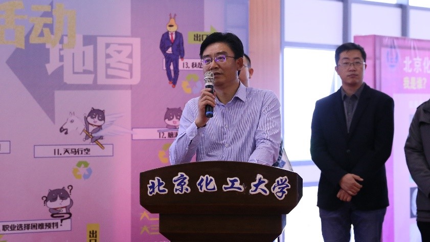 仪式上,学工办副主任李浚首先介绍了本届学业·职业规划大赛及职业生涯体验节概况。我校把握时代脉搏,从高度、广度、深度和精度挖掘就业需求,构建起完备的就业指导服务体系。今年第八届规划大赛的新特点为:决赛增设“我心中的校友榜样生涯”人物展演环节,鼓励学生挖掘树立校友生涯榜样,看看哪位校友的“今天”是同学们共同向往的“明天”,同时也搭建起了更完备的三阶培训体系。“职业生涯体验节”是学业·职业规划大赛培训体系中最具特色的指导活动。第三届体验节在保持以往的“游戏化”、“沉浸体验式”的活动形式外,有以下三点变化:一是调整了组织形式,将场地移至室内,保障活动体验;二是优化板块设置,细化服务目标群,为不同年级学生提供不同的建议路线,保证科学与便捷的指导;三是全景展现我校就业创业服务体系,建立长效就业指导机制,满足学生持续性的指导需求。