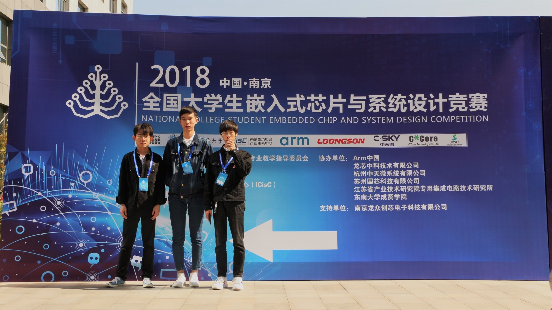 10月26-28日,由教育部高等学校电子信息类专业教学指导委员会、中国电子教育学会主办,东南大学与南京集成电路产业服务中心(ICisC)承办的"2018年嵌入式芯片与系统设计竞赛"在南京江北新区软件园的ICisC人才实训基地圆满举办。竞赛自本年7月初准备比赛作品,历时近4个月,受到了来自清华大学、北京理工大学、北京航空航天大学、北京邮电大学、复旦大学、厦门大学、东南大学、南京邮电大学、南京航空航天大学、南京工业大学、西安电子科技大学、大连理工大学等99所高校的关注,300余支参赛队伍报名参加。经过评审最终有48所高校共97支队伍进入总决赛。“Big_Old”小组由我校自动化专业16级本科生王琦、刘鑫、吴国良三人组成的“Big_Old”小组设计作品基于龙芯1C控制器的“双轮自动平衡运输小车”经过组委会专家的认真考评最终被评为国家一等奖。