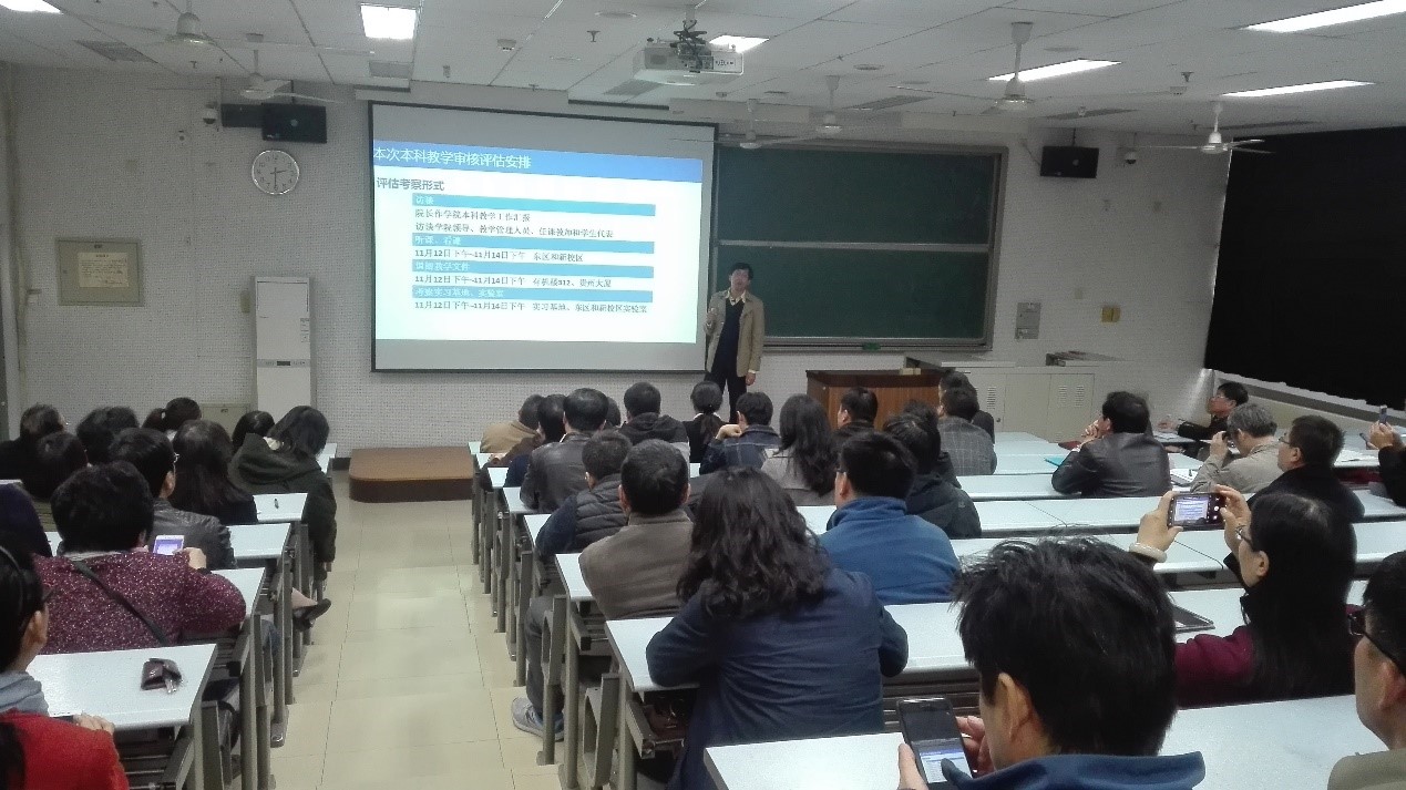 接着,教学副院长隋刚对此次审核评估所涉及的理念,包括审核评估的背景、新时期高等教育的人才培养、本轮审核评估的特点、审核评估重点审核的“五个度”、审核评估指导思想和原则、主要评估的内容、我们要做什么等问题进行了详细解读,并对学院的本科教学审核迎评工作做了具体的部署和安排。随后,由教学秘书张文芝老师向大家详细介绍了审核评估相关教学资料的自查、整改要求。