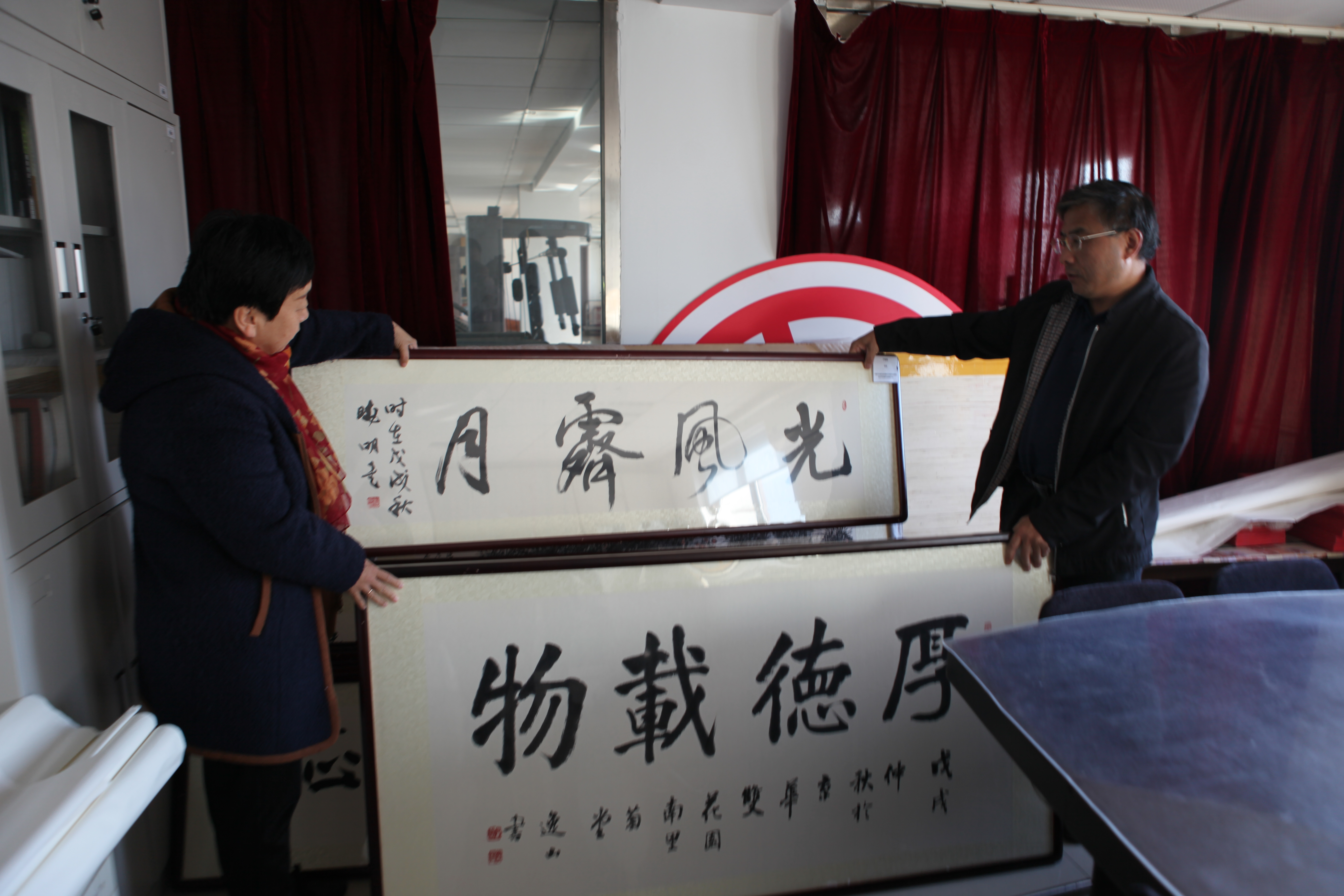 这些书画作品包含了我校广**生、校友及关心和支持学校建设的社会各界人士的爱校情怀和对学校的深深祝愿,是我校一笔宝贵的财富。在相关人员的共同见证下,书画作品由校工会顺利交接到校史馆。