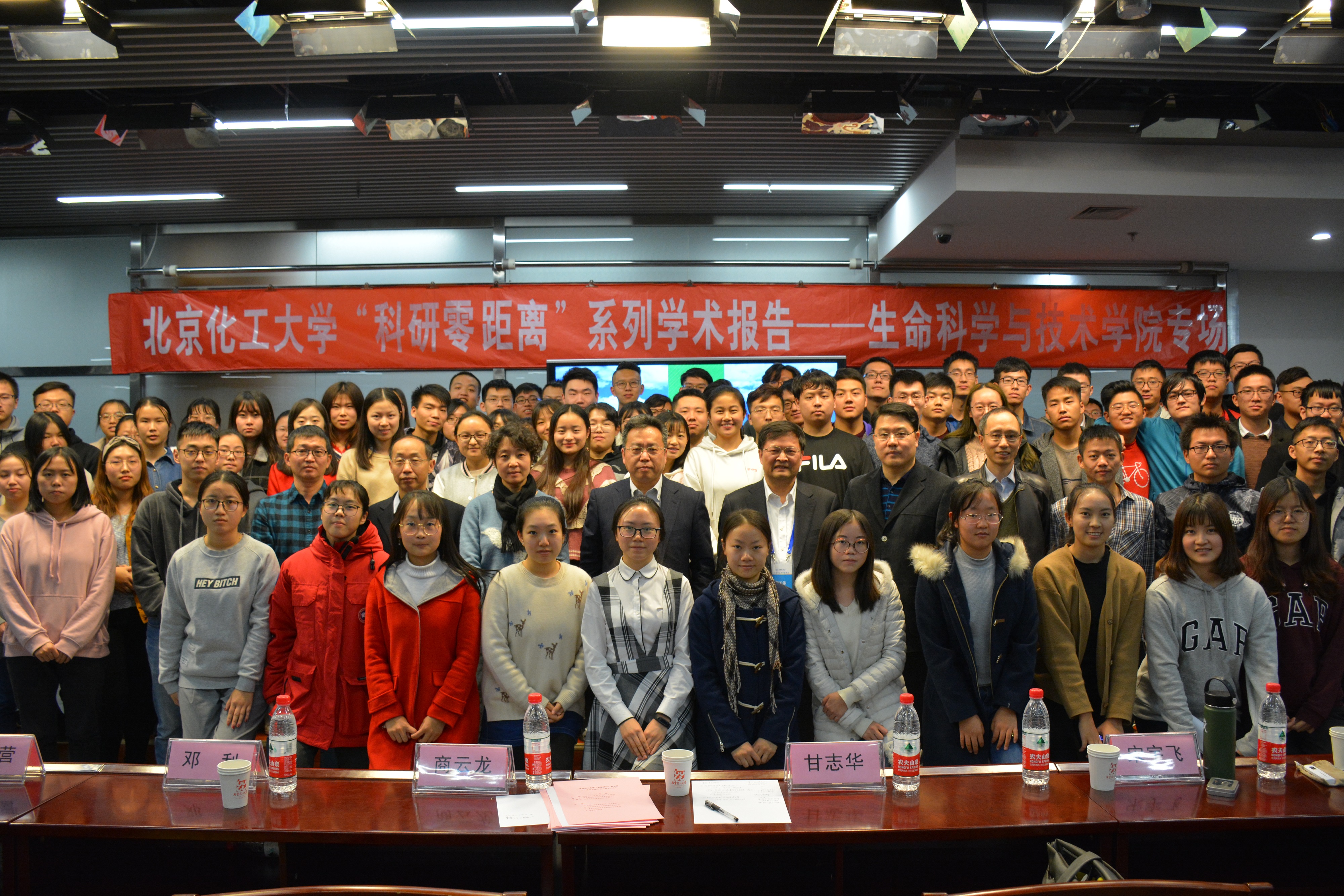 11月12日,由北京化工大学研究生院、学生工作办公室主办,生命科学与技术学院承办的“科研零距离”系列学术报告——生命学院专场在昌平校区图书馆五层学术报告厅举行。北京化工大学校长、中国工程院院士谭天伟,校党委副书记、研究生院院长甘志华、研究生院常务副院长宋宇飞、生命学院院长童贻刚、生命学院副院长罗施中和邓利、研招办主任吕营老师及生命学院300余名大三学生参加本次活动。报告会由校党委副书记甘志华主持。