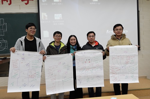 全体参训教师分为10个小组,每组4-6人。每位教师预先按照BOPPPS有效教学结构六大模块(导言、目标、前测、参与式学习、后测、总结)设计可供讲授十分钟的知识点,在两个半天的活动中,十组教师在十位引导员的带领下,轮流作为授课者和学习者参与活动,完成“教学环境设置 → 十分钟微课教学 → 同伴填写回馈单、引导员与授课者一对一交谈 → 全体组员对授课者口头反馈建设性意见”的完整过程。最后,参训教师集中在主教120教室,由每组引导员对组员进行逐一点评总结。