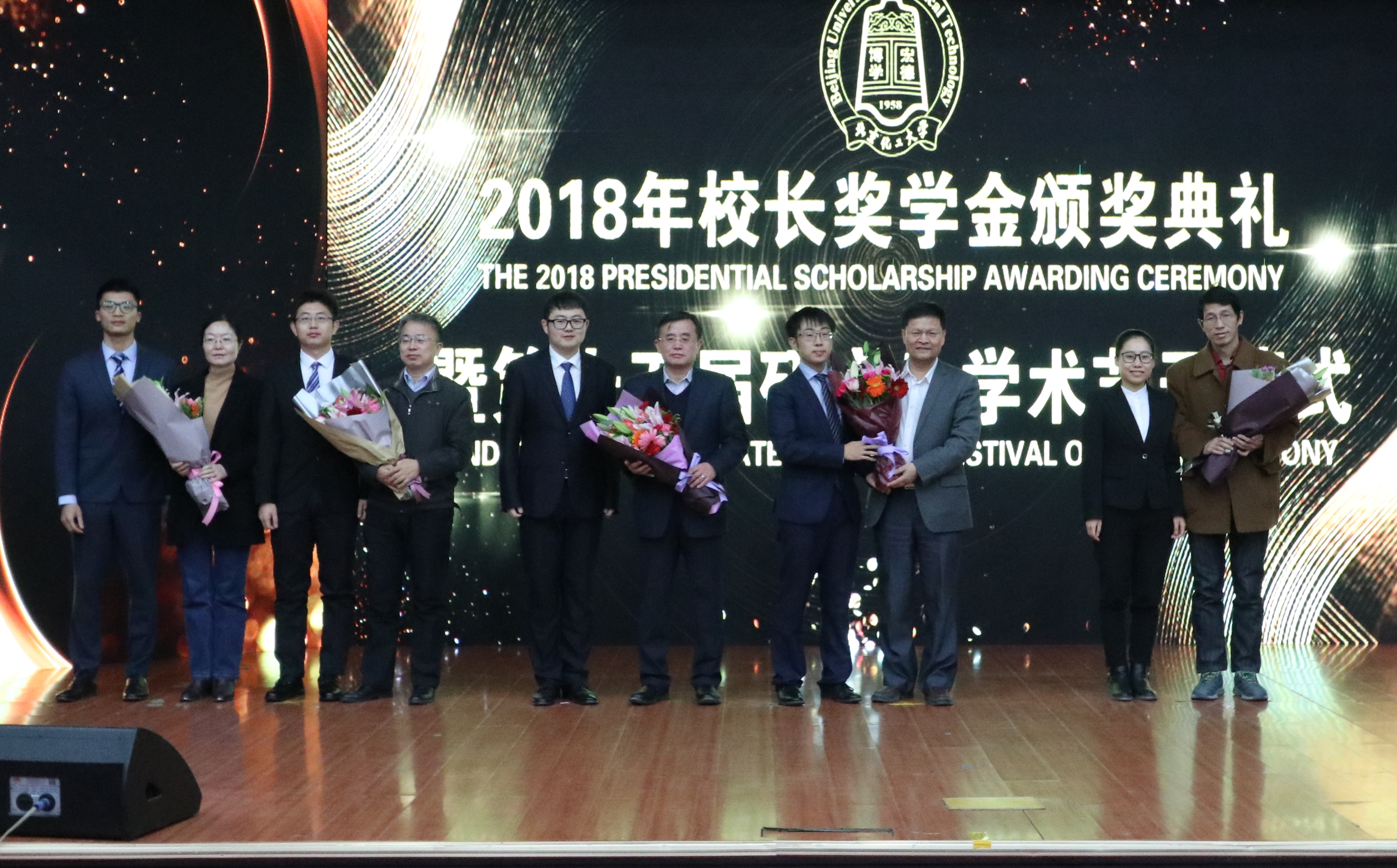 谭天伟校长为2018年校长奖学金获得者颁奖。获奖学生代表、材料学院博士生牛津与现场同学分享了他在科研道路上的成长和收获。他坦言自己在科研道路上并非一帆风顺,正是来自导师的鼓励、周围同学的帮助、个人的坚持和努力才换来今天的收获。饮其流者怀其源,学其成时念吾师。随后,获奖博士生向导师献花,表达了对恩师谆谆教诲的感激之情。