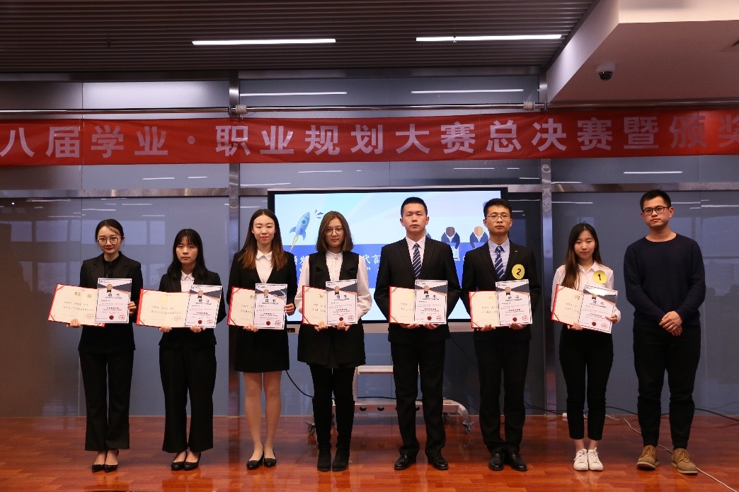第八届学业·职业规划大赛于10月启动,在全校范围内开展学业职业规划比赛。依托本次大赛,举办各类规划指导活动近50场,近万名学生参与到规划大赛中,完成规划书12700余份。经过班级初赛、院级复赛、校级半决赛,最终10名选手晋级校级总决赛。决赛现场,选手们通过生涯榜样人物展演视频、PPT演讲和评委答辩三个环节进行角逐,同学们有的致力于为正义发声,成为一名公益律师,服务弱势群体;有的愿用自身所学,坚守国民用药安全,让我国的药品评价体系走向世界前列;有的愿成为一名公益项目发起人,让更多人实现他们想要的生活。