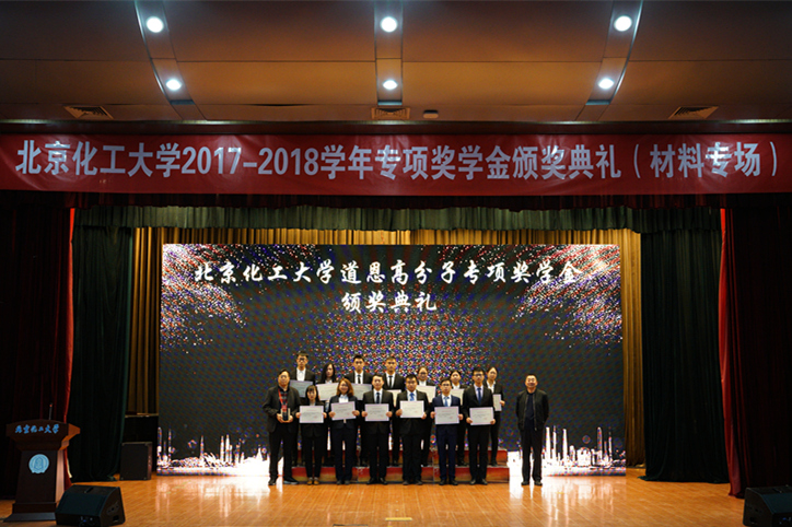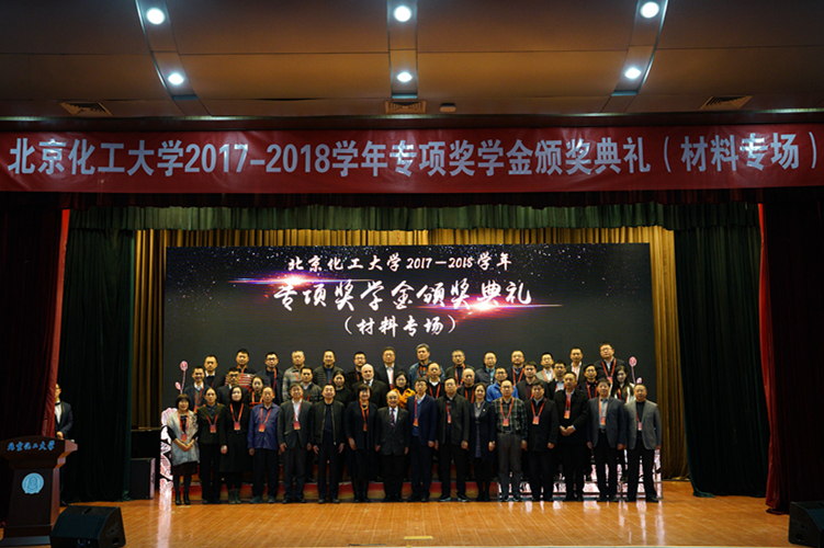 12月6日下午,北京化工大学2017-2018学年专项奖学金颁奖典礼(材料专场)在科学会堂举行。校党委副书记宋来新,34家设奖单位或个人,产学研合作单位代表,我校学工办、研工部、教育基金会、材料学院、机电学院、理学院、生命学院相关领导和教授代表,获奖学生参加此次典礼。