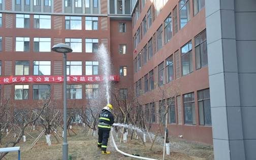 为进一步贯彻落实党的十九大会议精神,坚决执行《中华人民共和国消防法》、《高等学校消防安全管理规定》、《北京市消防条例》等文件要求,巩固“平安校园”的创建成果,加强冬季火灾防控工作,确保我校消防安全形势持续稳定,切实增强学校师生员工的消防安全意识,提高消防应急逃生自救能力,12月11日14时,我校在昌平校区学生公寓1号楼举办消防疏散演练。