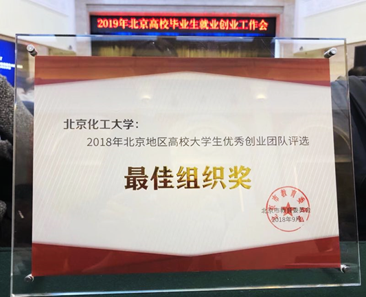 此次获评“最佳组织奖”,是市教委对学校创新创业教育工作的充分肯定。我校全面推进创新创业教育工作以来,已连续四年获得教育部和北京市的创新创业工作集体奖项:2015年“北京化工大学‘大化工’行业协同实践育人创新创业基地”被评选为50家教育部首批“全国高校实践育人创新创业基地”之一;2016年获评首批北京地区高校“示范性创业中心”称号;2017年荣获“北京市深化创新创业教育改革示范校”称号;2018年荣获“全国创新创业典型经验高校”称号。