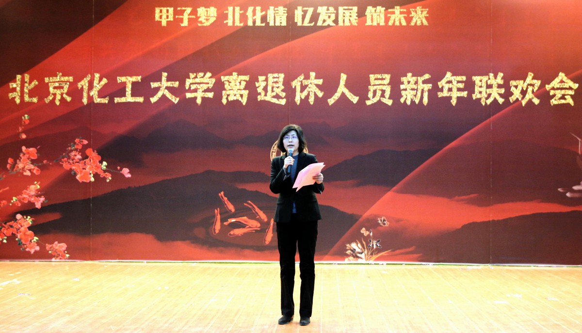 主管离退休工作的曲雁同志发表讲话。她表示,作为新到任的校领导,她向各位离退休老同志分享了经过调研了解到的学校离退休工作情况,对学校的离退休工作给予了充分肯定。她讲到,学校离退休工作坚持“围绕中心、服务大局”,把握“教育、管理、服务、稳定”的工作主线,加强离退休人员政治建设、思想建设、组织建设,落实离退休人员各项待遇,建立了“五位一体”的大团队离退休工作队伍、多层次全方位的困难帮扶体系和多种信息化平台,全面做好离退休人员的管理和服务,积极引导老同志为党和人民的事业增添正能量,实现了学校离退休人员队伍长期以来的平稳、有序、积极、健康。她指出,老同志是学校的宝贵财富,是我校发展成果的贡献者。在未来的工作中,我们一定要饮水思源,不忘初心,始终铭记离退休人员为学校60年建设与发展所付出的努力与贡献;我们要始终怀揣对离退休同志的尊重与热爱,积极主动、用心用情做好离退休人员服务与管理工作。最后,她衷心祝愿全体离退休老同志新年快乐、健康长寿,祝愿北京化工大学甲子筑梦、再创辉煌。