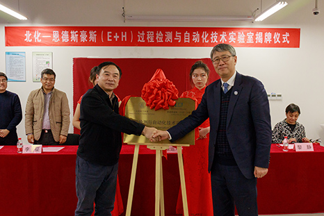 恩德斯豪斯(中国)自动化有限公司总经理张运才与北京化工大学副校长任新钢共同为实验室揭牌。