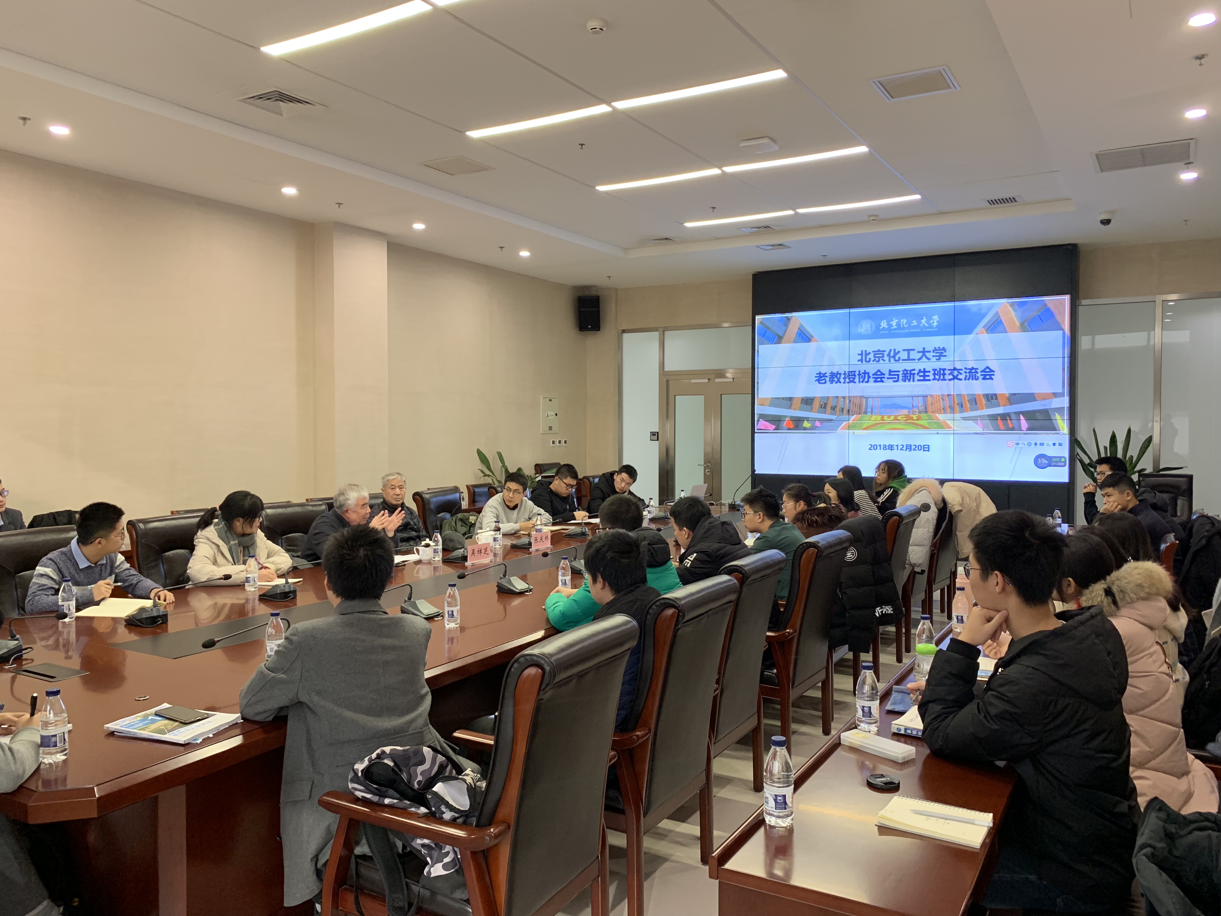 为深入学习贯彻习近平总书记在庆祝改革开放40周年大会上的重要讲话精神,加强新生入学适应教育和理想信念教育,12月20日,校关心下一代委员会、老教授协会、学生工作办公室在昌平校区联合开展老教授师生交流会。老教授协会的8名退休教授与来自化工学院、材料学院、机电学院的110名新生进行交流座谈。围绕庆祝改革开放40周年等主题进行了深入细致的交流。