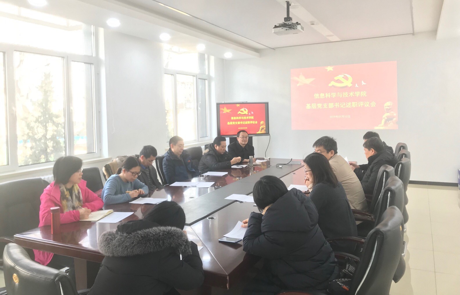 1月10日,信息科学与技术学院在学院楼三楼会议室召开2018年度基层支部书记述职评议会,学院全体教工支部书记参与了此次述职汇报,学院党委委员对此次述职汇报的基层支部书记进行现场评议。