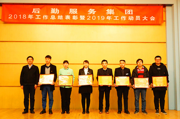 集团副总经理陶贞旭宣读《后勤服务集团关于对2018年度先进集体和先进个人表彰的决定》和《后勤保障部与后勤服务集团党总支关于表彰优秀共产党员的决定》,授予公寓服务中心等8个中心“先进集体”称号;授予餐饮服务中心后勤质检部等11个班组“优秀班组”称号;授予马南等40名同志“先进个人”称号;授予餐饮服务中心等7个中心为集团特色工作奖;授予陶贞旭等11名同志“优秀共产党员”称号。
