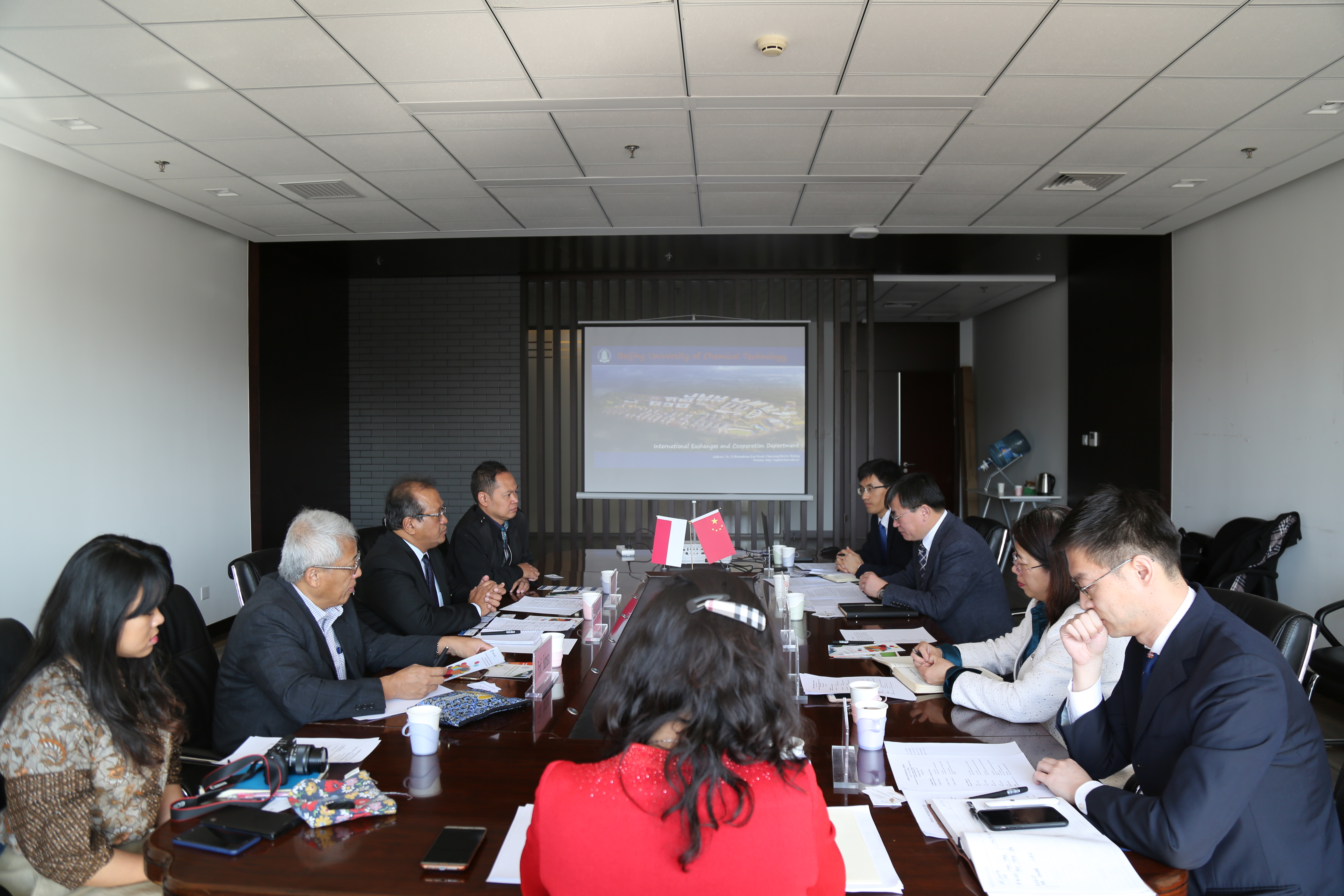 3月6日上午在图书馆五层会议室,印尼苏门答腊理工学院(ITERA)校长Ofyar Tamim、副校长Sukrasno以及国际处处长Acep Purqon一行访问我校。我校校长谭天伟、副校长王峰会见了苏门答腊理工学院代表团,国际处处长毛立新、副处长王永生、国际教育学院院长刘广青、留学生办公室主任赵健雅等相关人员参加了会谈。