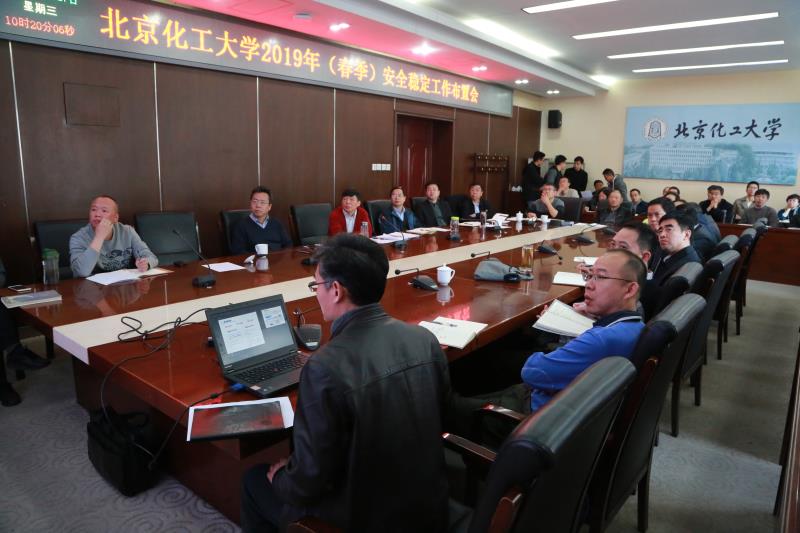 在会上,保卫处处长(稳定办主任)王小健就教育部、北京市委教工委对安全稳定工作的要求做了汇报,并就学校全年校园安全稳定工作计划方案进行了说明;保卫处副处长姚望、庞然分别就近期实验室安全、消防安全及学校2018年安防建设、易制毒化学品管理、2019年学校治安重点工作进行了汇报。