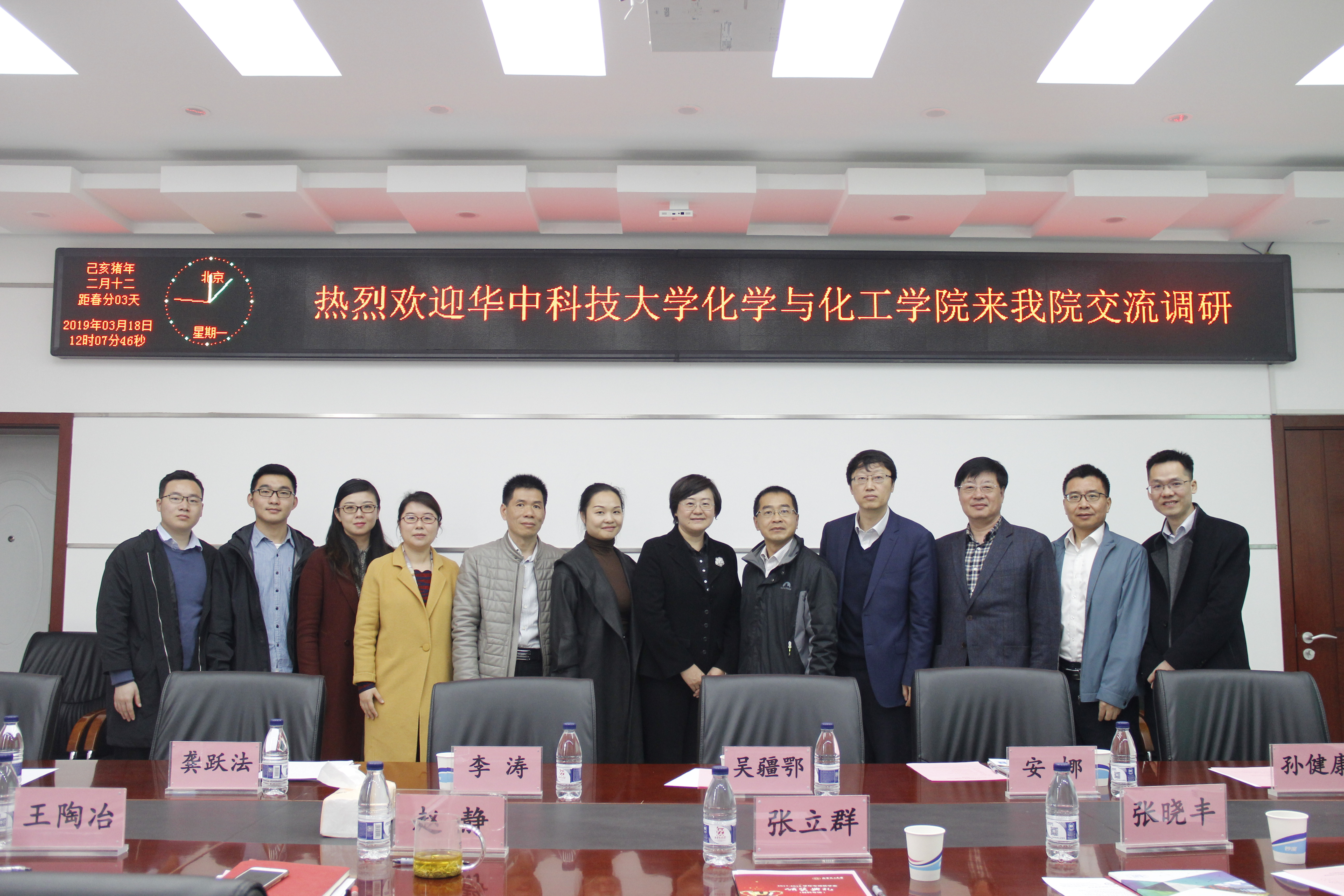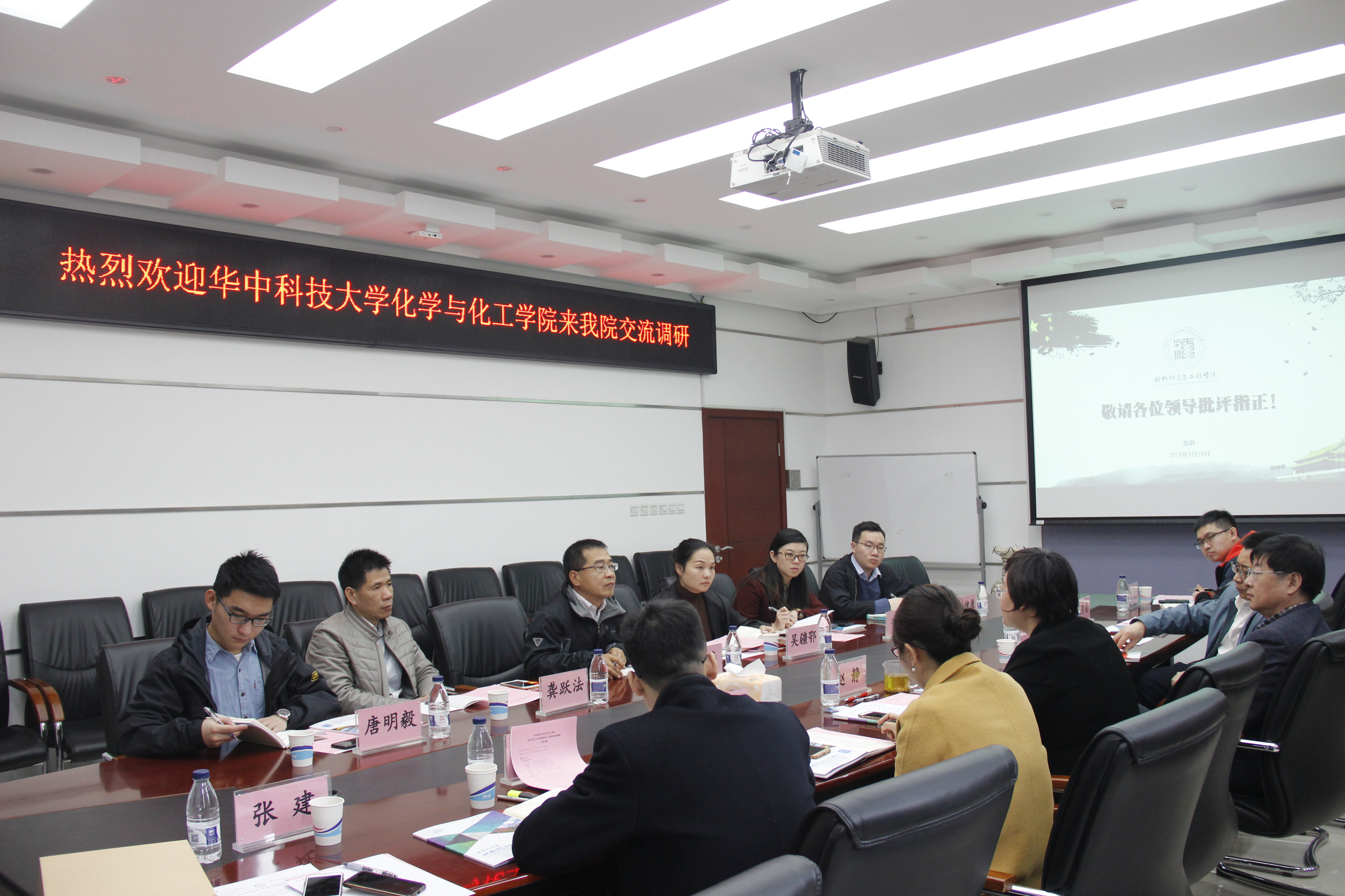 3月18日上午,华中科技大学化学与化工学院党委书记李涛、党委副书记吴疆鄂、副院长龚跃法等一行六人到我校材料学院进行党建工作交流,北京化工大学材料学院党委书记赵静、院长张立群、常务副院长张晓丰、研究生院副院长兼党委研工部副部长王陶冶、长江学者、杰出青年基金获得者田明教授等参加调研交流会。交流会由材料学院党委副书记李承明主持。