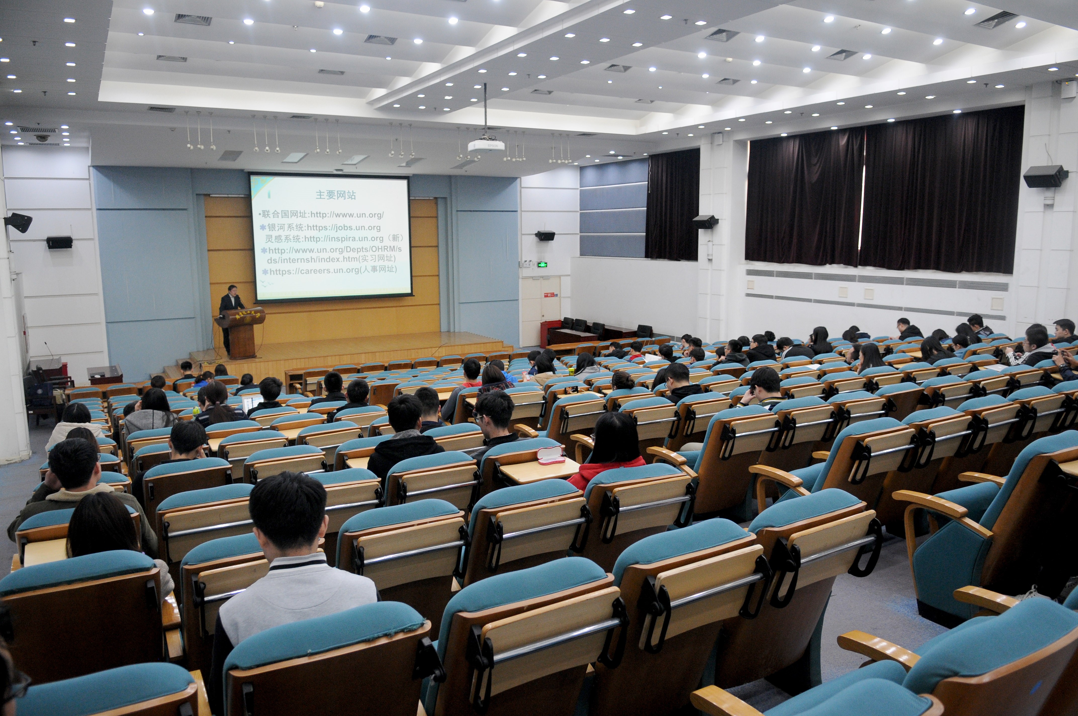 关于大学生如何申请国际组织实习生,牛仲君结合理论知识与自己的实践经历,向我校师生做了详细的讲解。他强调,国家近年来在积极推动大学生赴国际组织实习任职,希望同学们踊跃申请,在国际组织的舞台上发挥自己的专业优势,实现自己的“家国情怀”,为国家发声。