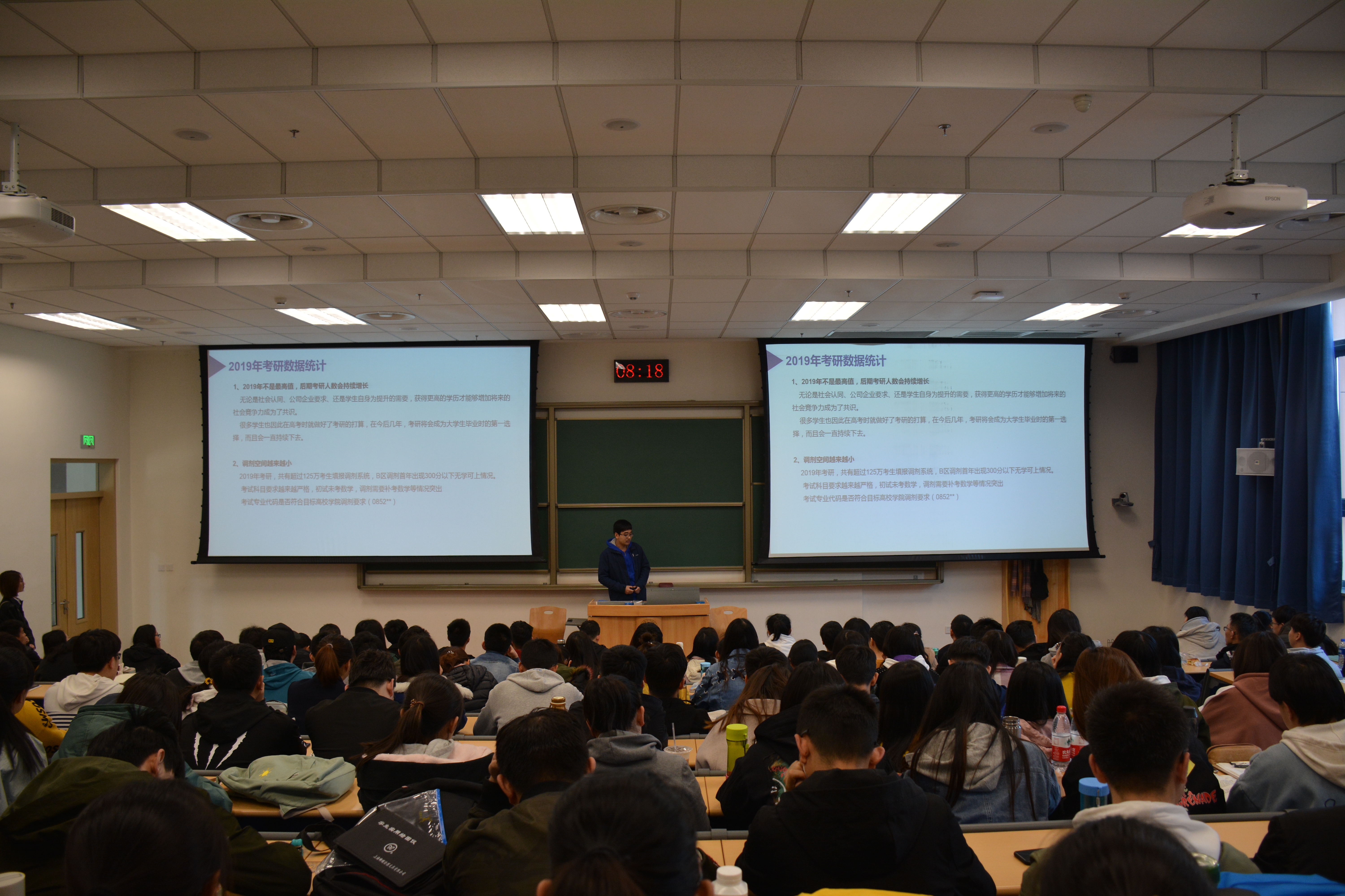 为更加直观展示考研形势,依据当前统计数据,辅导员戚昊辰老师,从总体、报考、上线、录取以及GPA五个方面向大家介绍当前考研概况。通过数据分析,戚昊辰老师指出:报考本校录取率极高,而在报考外校方面,受到国家政策改变的影响以及由于部分同学跨专业考研,录取率偏低,且有相当一部分同学是通过调剂录取,结果不甚理想。