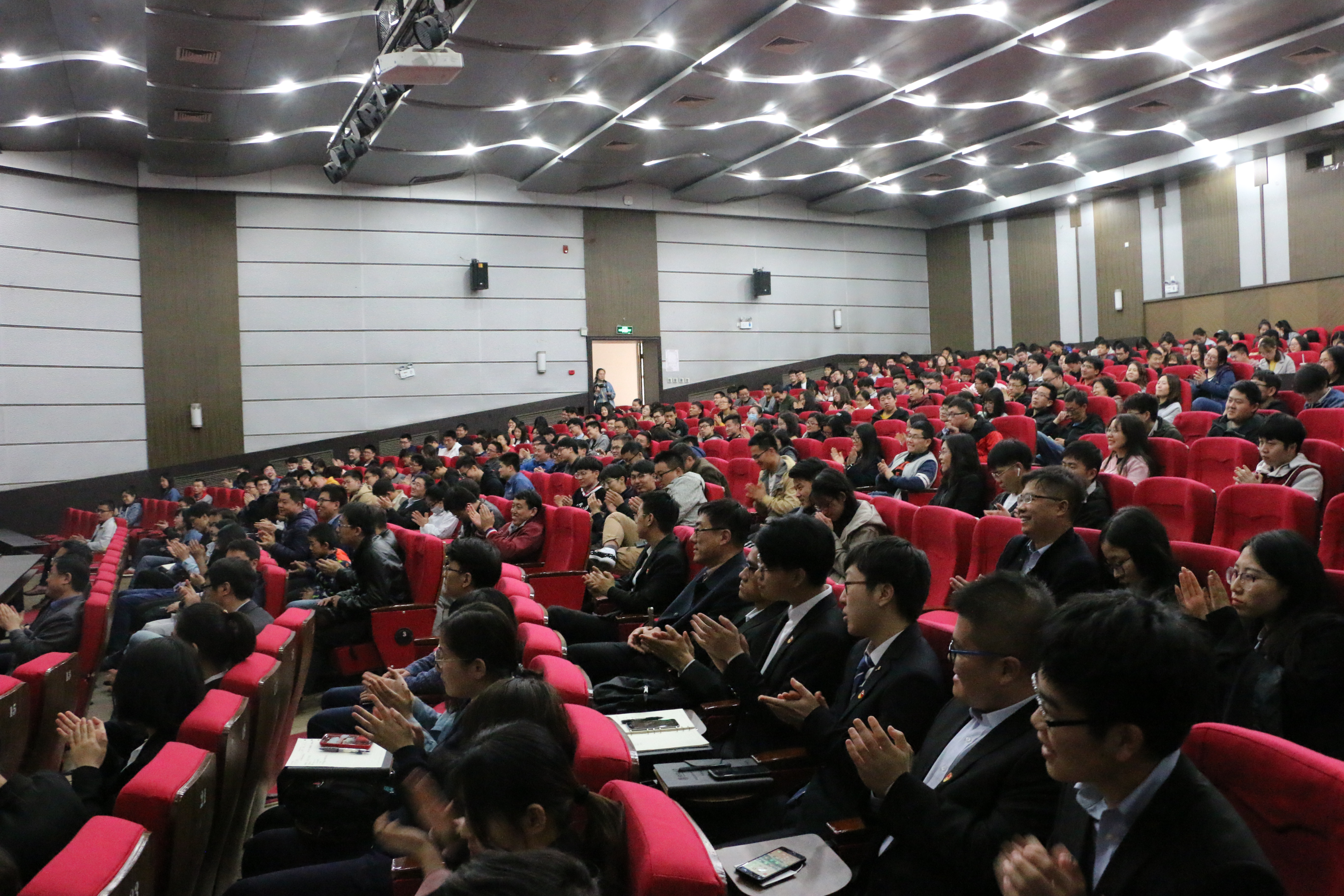 报告会持续了近3个小时,郑强教授慷慨激昂、妙语连珠。他以生动的案例、详实的数据、真挚的情感和幽默的语言,引来了全场师生近百次热烈掌声,引发了在场观众的深刻思考,引燃了广**生的爱国热情。