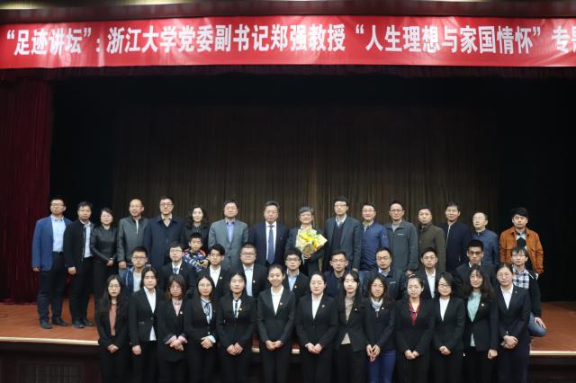 4月13日下午,浙江大学党委副书记、教育部高分子合成与功能构造重点实验室主任、博士生导师郑强教授做客我校“足迹讲坛”,为师生带来题为“人生理想与家国情怀”的专题报告。校党委副书记甘志华,党委组织部常务副部长崔春花、材料学院院长张立群、研究生院副院长兼研工部副部长王陶冶以及我校教职工党支部书记、研究生党支部书记、研究生党员骨干培养班学员等470余人参加报告会。报告会由研工部常务副部长李齐方主持。