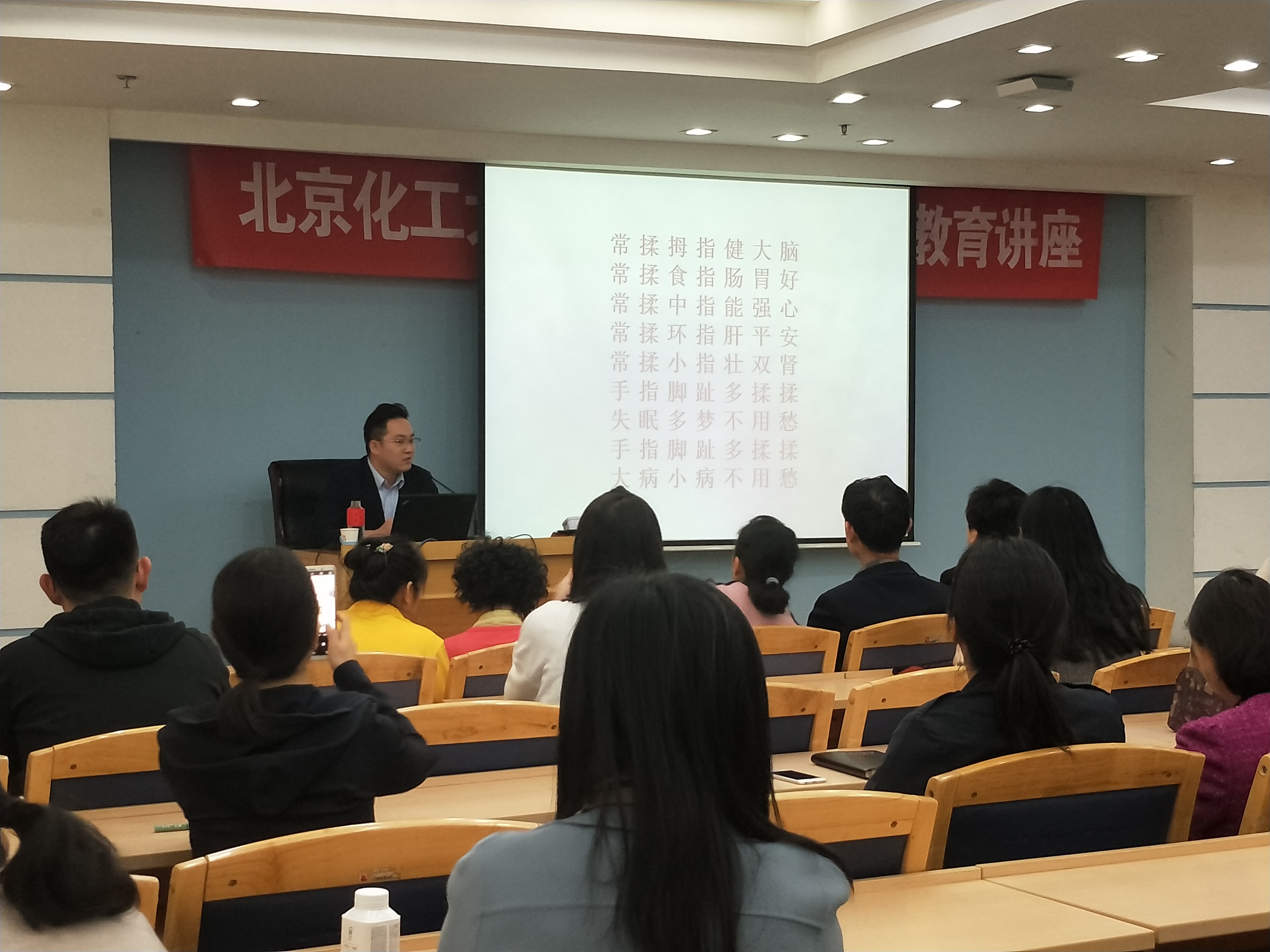 讲座伊始,史老师主要向教职工介绍了与安全健康相关的理论知识。主要包括:CPR现场紧急救护知识,空气污染的危害及预防,包括肩周炎、颈椎病、腰肌劳损等在内的职业病及慢性病的预防改善,经络穴位的位置、功能与养生等。史老师理论储备丰富、讲解深入浅出,现场教职工全神贯注,忘我地享用此次安全健康“盛宴”。除了理论讲解外,史永峰老师还现场手把手带领大家寻找穴位、演示日常**手法、使用理疗仪进行理疗等,通过实践教学让教职工掌握日常生活中保持安全健康的小妙招和基本功,赢得了现场阵阵掌声与喝彩。之后,工会常务副主席贾梦秋就此次活动的积极意义表示了充分地肯定,认为此次讲座的内容丰富、贴合生活,对其个人及在场教师都起到了安全引领与健康督促作用。她呼吁教职工在工作之余更加关注自己的身体情况,健康生活、快乐工作。