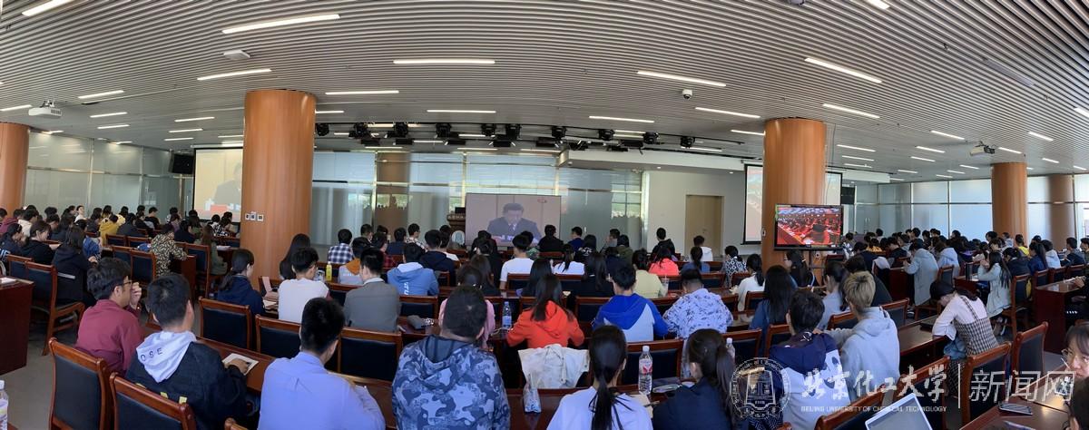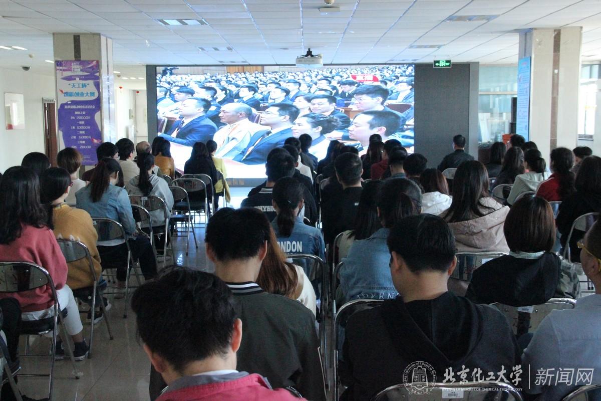 纪念五四运动100周年大会于2019年4月30日上午10时30分在人民大会堂举行。中共中央总书记、国家主席、中央军委主席习近平出席大会并发表重要讲话。学校党委高度重视收听收看纪念大会直播工作,提前安排、周密部署,校党委理论学习中心组、各二级党组织、机关党委各支部、各级团学组织、学生工作部门等积极组织全校师生员工以多种形式收听收看大会直播,各基层党支部、学生组织、学生社团、班级在办公室、教室、实验室、宿舍等地自行收听收看。