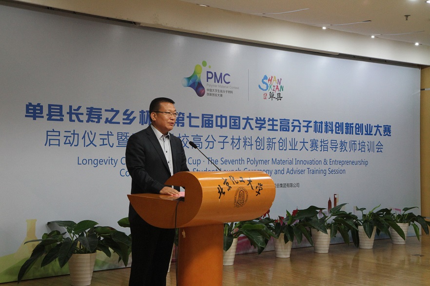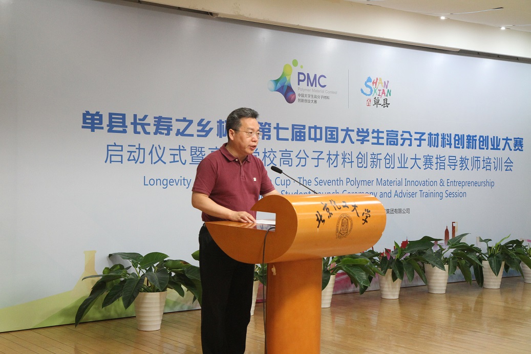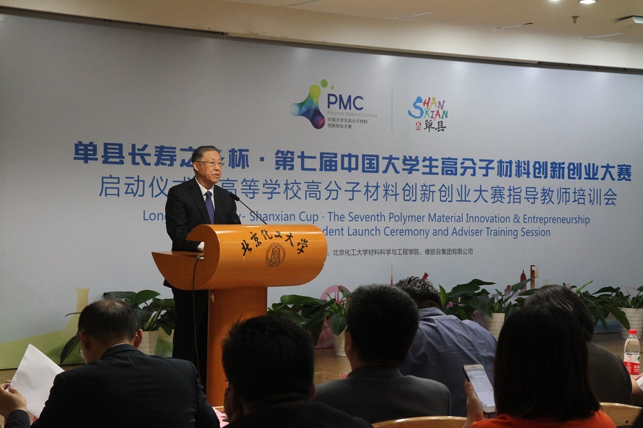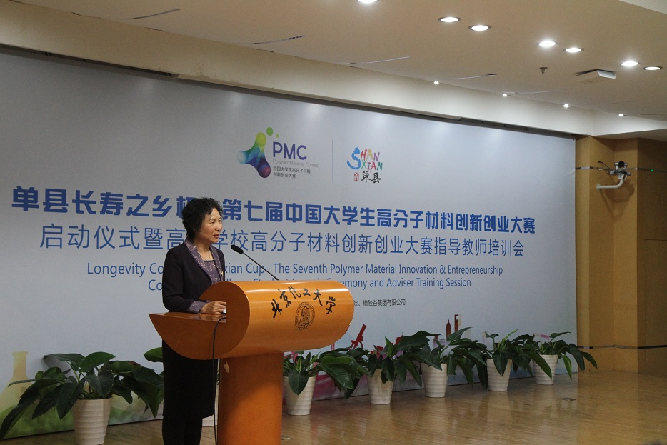 5月10日上午,由中国石油和化学工业联合会、中国化工教育协会、单县人民政府、橡胶谷集团联合主办,北京化工大学材料科学与工程学院、橡胶谷运营中心承办的“单县长寿之乡杯·第七届中国大学生高分子材料创新创业大赛启动仪式暨高等学校高分子材料创新创业大赛指导教师培训会”在我校举行。北京化工大学党委副书记甘志华,中国化工教育协会驻会副会长于红军,单县县委常委、宣传部长李磊,北京橡胶工业研究设计院院原副院长许春华,橡胶谷集团有限公司副总裁路建平,中国塑料加工工业协会副理事长马占峰,全国橡塑机械信息中心秘书长李玱玱,中国化工教育协会秘书长辛晓,广饶县人民政府副县长林广义,北京化工大学学生工作办公室副主任(主持工作)邹德勋、教务处副处长王智谦、材料学院党委书记赵静、材料学院常务副院长徐福建、材料学院副院长隋刚、材料学院党委副书记李承明等参加活动,新华社、人民网、光明网、中国化工报、中国化工信息、山东电视台、中国橡胶杂志、环球网的媒体记者,北京化工大学、四川大学、北京理工大学、江南大学、西南科技大学、青岛大学等高校指导老师、学生代表等200余人参加活动。