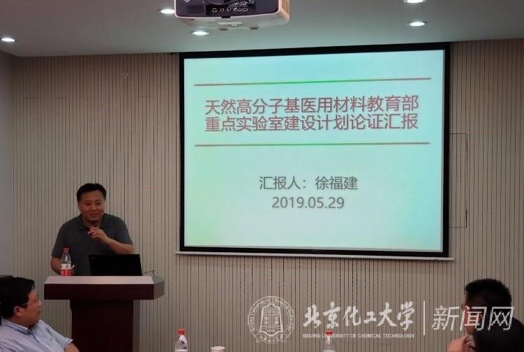 5月29日上午,教育部科技司和北京市教委组织专家组在北京化工大学对天然高分子医用材料教育部重点实验室的立项建设进行了论证。北京市教委科研处干部刘安邦主持会议,教育部科技司干部张楠楠与会,中国科学院化学研究所吴德成研究员担任专家组组长,专家组成员有北京医院马洁研究员、清华大学许华平研究员、北京理工大学马壮教授、北京科技大学王鲁宁教授、北京航空航天大学蒲放教授、首都师范大学赵云云教授。王峰副校长,科学技术发展研究院副院长徐帅,材料科学与工程学院院长张立群,天然高分子医用材料教育部重点实验室负责人徐福建教授及实验室成员参加会议。