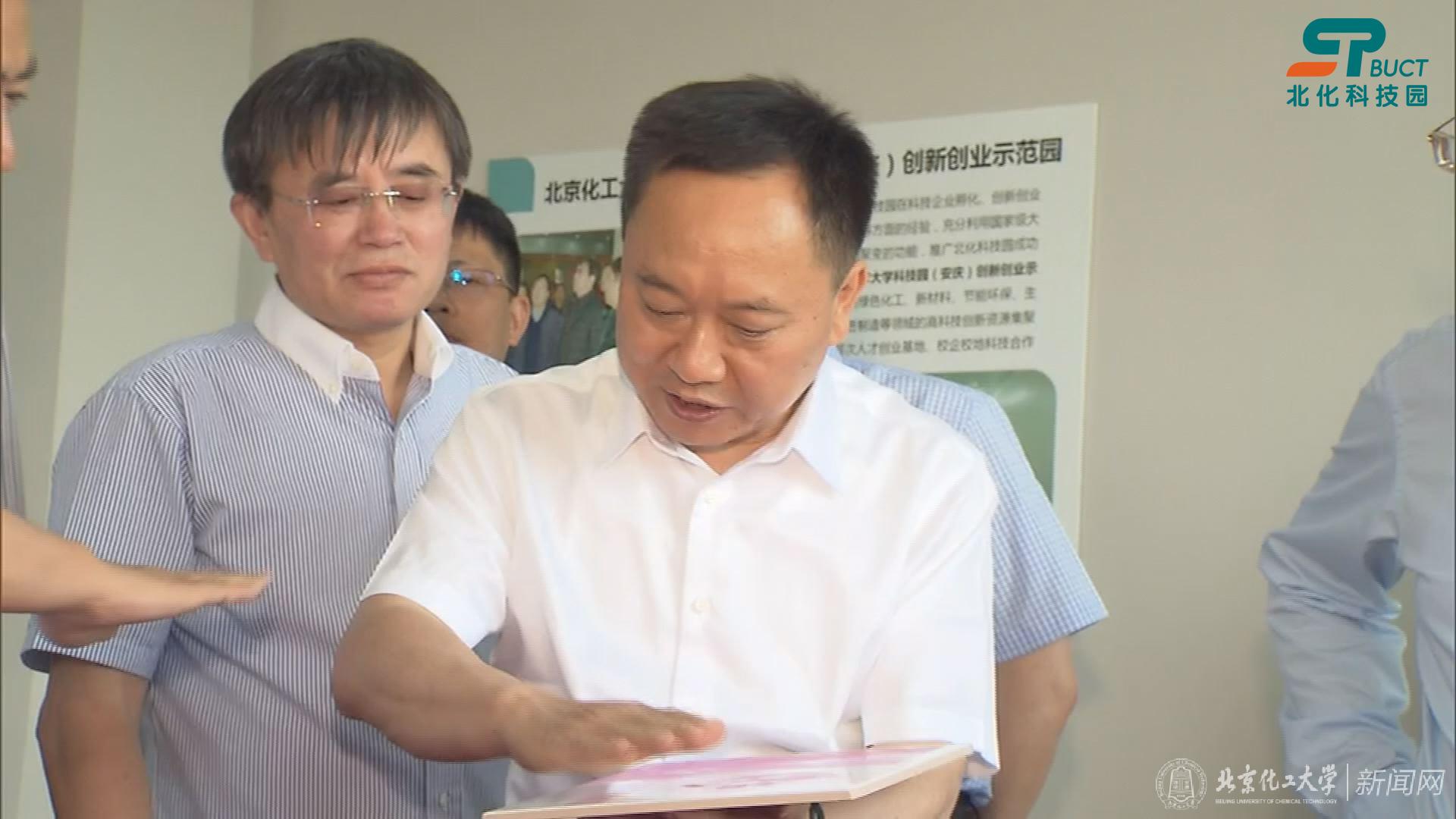 6月1日上午,安徽省省长李国英在安徽省政府秘书长白金明、安庆市委书记魏晓明陪同下,到北京化工大学安庆研究院调研考察。适逢在安庆调研研究院工作的北京化工大学副校长王峰、北京化工大学化学学院院长何静、大学科技园管委办主任张国彬等陪同调研活动。