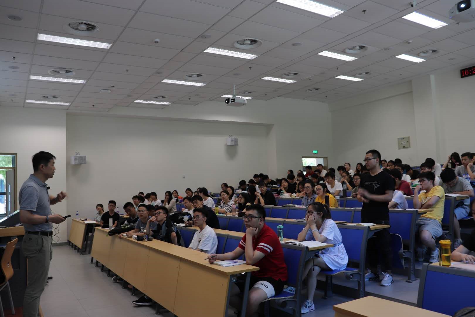 李春教授向同学们介绍了其团队解析的真菌-β-葡萄糖醛酸苷酶的晶体结构,通过氨基酸定点突变、loop替换、糖基化等设计改造,提高了催化效率和催化稳定性;开发了吨级酶法定向水解甘草酸生成GAMP和甘草次酸的工艺,解决了传统工艺中酸碱水解等环境问题;解析并设计了甘草酸及其衍生物的全合成途径,创制了酵母体系合成α/β-香树脂、甘草次酸、GAMP和甘草酸的新工艺;通过转录调控、氧化还原匹配优化、代谢通量调经、酶工程等措施有效地提高了微生物合成能力,变革了传统工艺挖根提酸的获取方式,可望解决原料来源、生态和耕地问题。