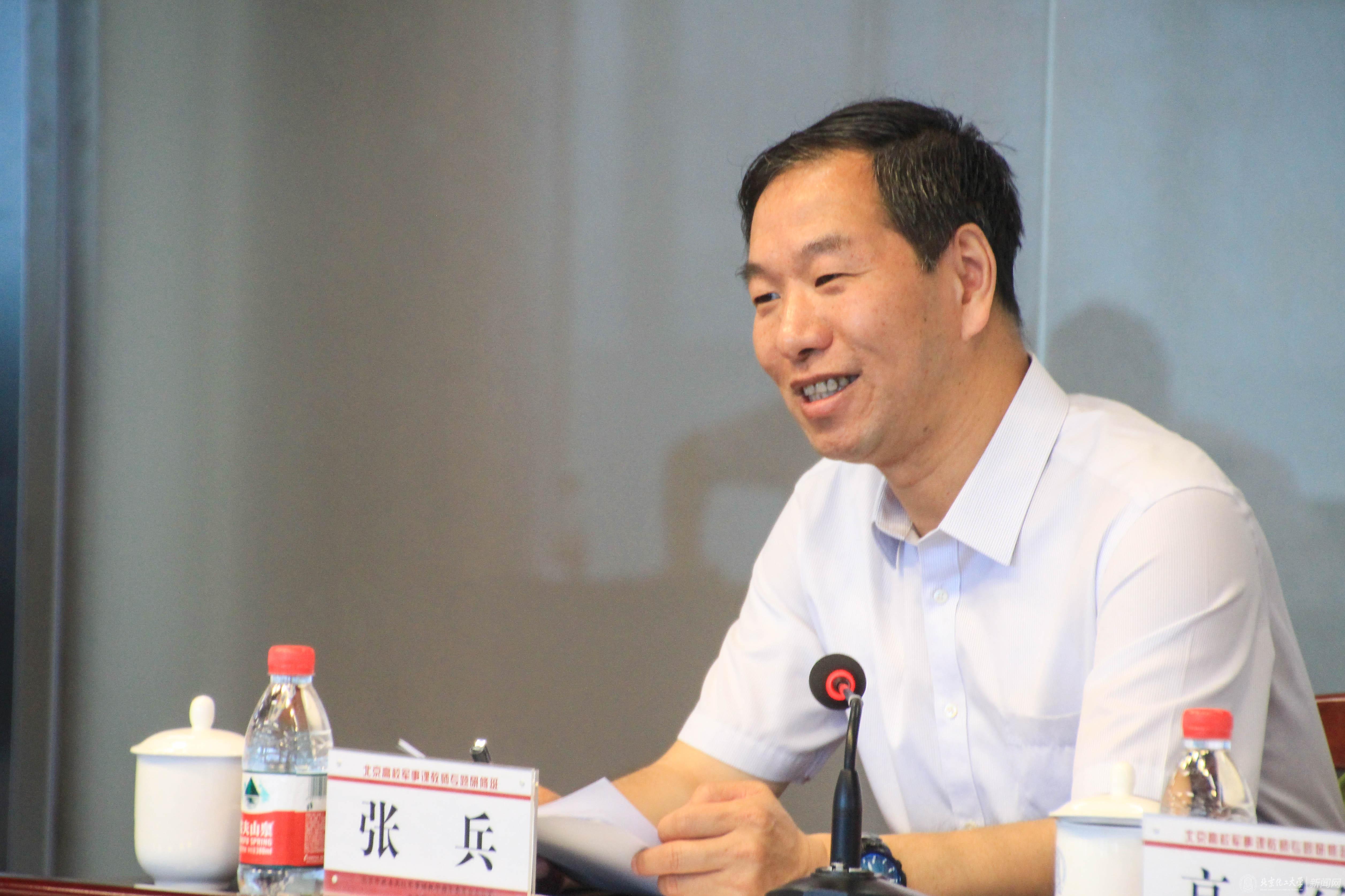 北京市教委体卫艺处调研员张兵对教指委办公室依托单位北京化工大学的精心准备表示感谢,张兵调研员指出,此次专题研修主要聚焦新《大纲》学习和高校军事课教研室建设,当前,北京高校军事课教学正面临着挑战,但同时希望大家要抓住这样一个契机,推动自身的军事教研室建设,培养自己的军事课教师团队,打造属于自己的军事课“金课”;同时希望军事课教指委办公室能够继续推进师资库建设,创新培训教学方式,为军事课教师参加学习、提高能力提供更多的强有力的保障措施。
