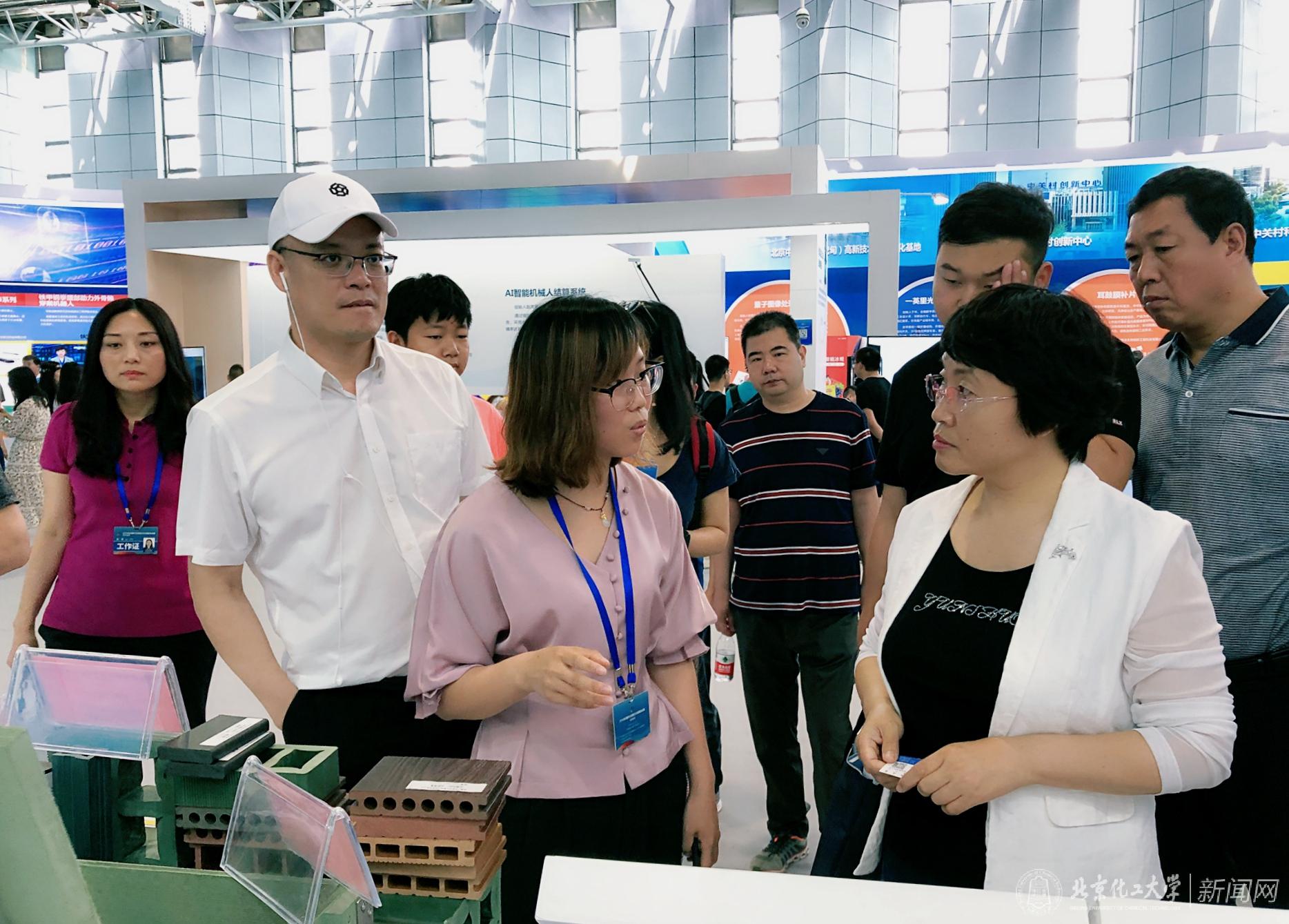 在展示中心的核心展区,我校袁其朋教授和薛平教授团队的西兰花活性抗癌产品、芦笋活性成分产品和军用微发泡木塑复合枕木产品作为重点项目亮相。15日上午,雄县县委常委、常务副县长张义霞考察我校展位,对我校利用废弃塑料和纤维研制的绿色环保木塑产品给予了充分肯定,希望该项目能够落地雄安,解决白洋淀的芦苇处理问题。