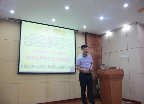 何群老师以师生们所在的实验室、办公室及日常生活环境为场景,围绕典型案例分析、强化消防安全意识、消防法规注释解析、火灾隐患排查、火场的逃生方法、初期火的扑救以及车辆防火的认识与逃生自救方法等七个方面进行了讲解,他综合运用案例剖析、视频回放、讲解示范、互动交流等多种方法,何老师讲得深入浅出、通俗易懂,参加师生听得投入认真,起到了良好的培训效果。