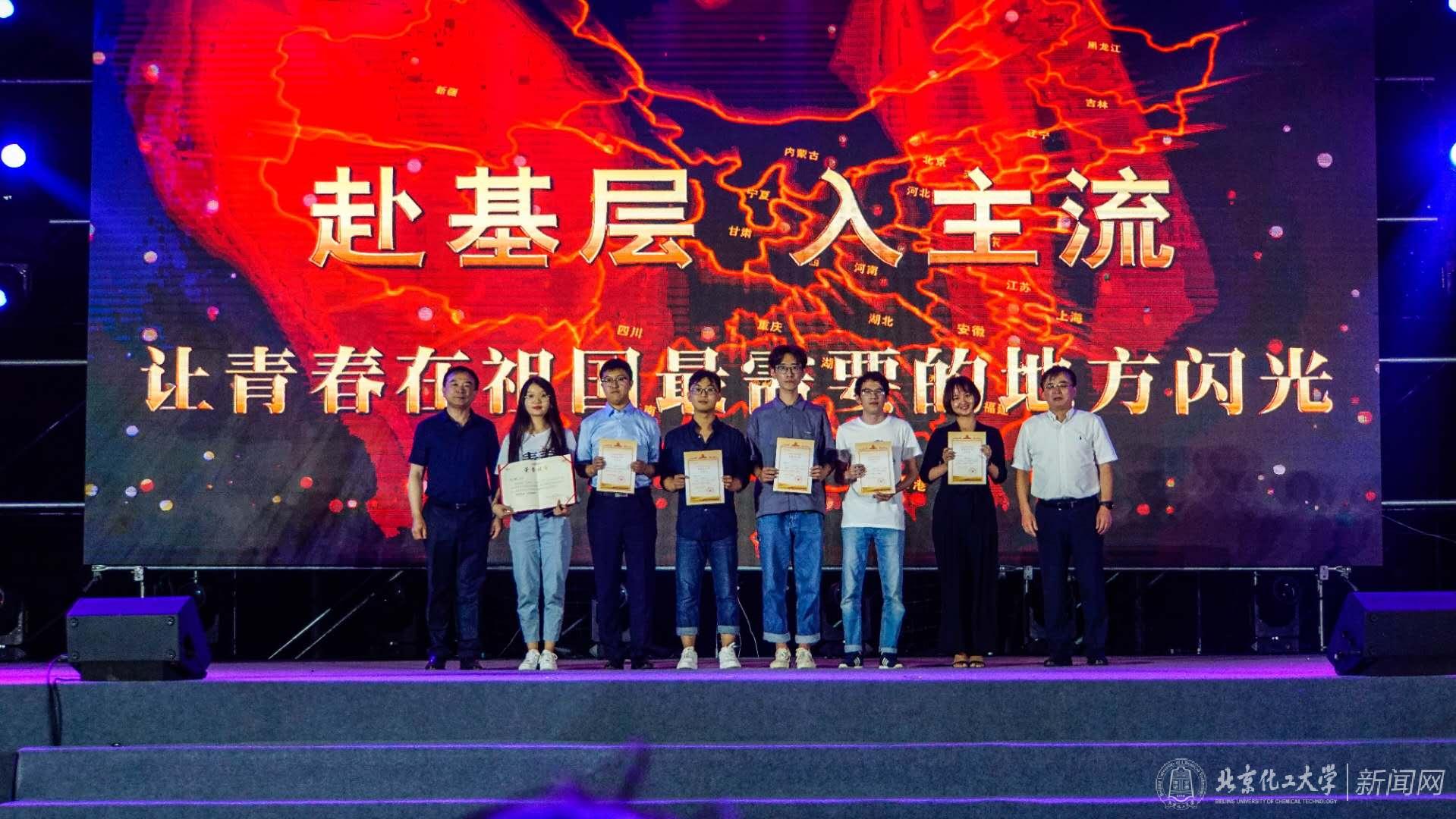 晚会现场,校党委副书记宋来新,校党委副书记甘志华为毕业文化衫获奖的设计者颁发获奖证书,党委常委、副校长任新钢,党委常委、副校长王峰为志愿服务西部和赴基层就业的学生代表颁发纪念证书。学生代表们现场接受采访,他们表示希望通过自己的微薄力量,践行青春诺言,到祖国最需要的地方建功立业,切实肩负起当代大学生的使命。晚会现场揭晓了“我心中最亮的星”——第十六届“十佳教师”的评选结果,谭天伟校长为获奖教师颁奖。获奖教师代表谢超然老师现场接受采访,他送去对毕业学生的期望与祝福,也衷心祝愿全体毕业生在青春下一站中大展宏图,鹏程万里。