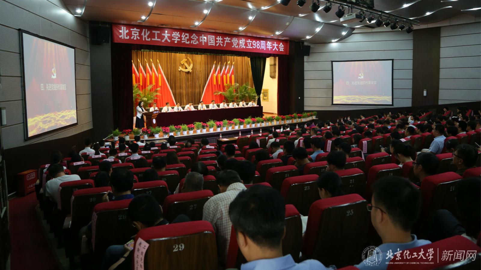 7月1日下午,在庄严的《中华人民共和国国歌》声中,北京化工大学纪念中国共产党成立98周年大会在科学会堂举行。教育部党建联络员、中央财经大学原党委副书记、纪委书记袁东,全体在岗校领导出席了会议。校党委书记袁自煌在大会上发表讲话。校党委副书记甘志华主持会议。