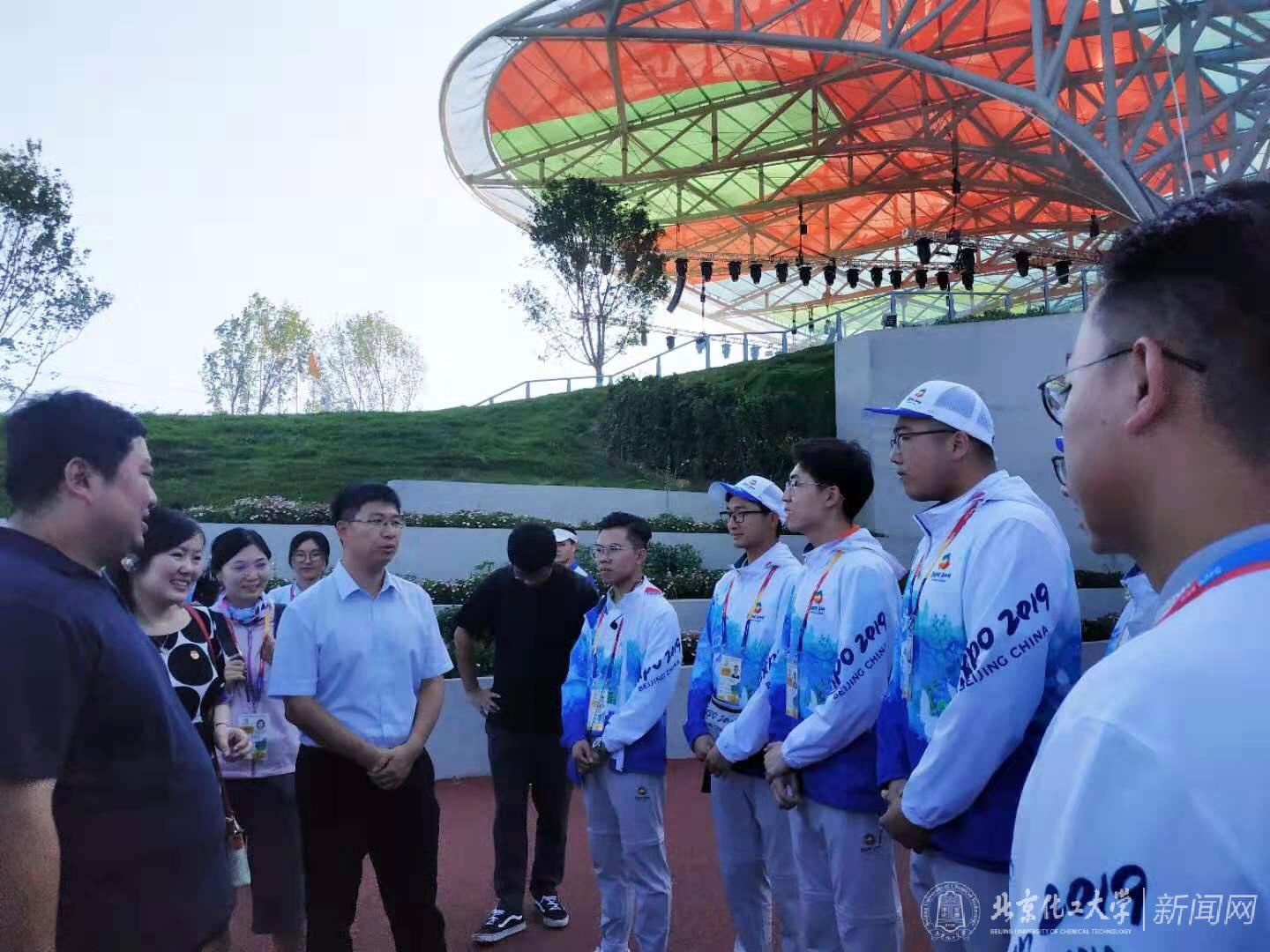 7月3日下午,朝阳区团区委副书记孙博洋、北京化工大学学生工作办公室副主任李浚、校团委副书记解静和校团委干部何昫蔚老师等一行人前往北京世园会园区,亲切慰问我校在岗青年志愿者。慰问期间,老师们到达世园会园区,与结束工作的志愿者们进行交流,领队朱劼尧老师向前来慰问的老师们讲述了我校志愿者情况。