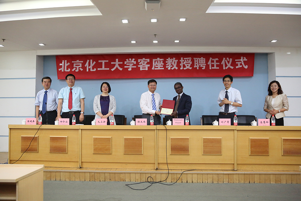 随后,谭天伟校长致辞。他代表学校对Thokozani Majozi教授受聘为我校客座教授表示祝贺,并希望在Thokozani Majozi教授的帮助下,进一步加强我校与南非金山大学的合作与交流,带动和促进我校化工学科相关领域的发展。Thokozani Majozi教授也发表了热情地发言,表示非常荣幸聘为北京化工大学客座教授,在今后的合作交流中,将为北京化工大学的人才培养与科学研究尽自己的一份力量,同时欢迎北京化工大学师生到南非金山大学交流访问。