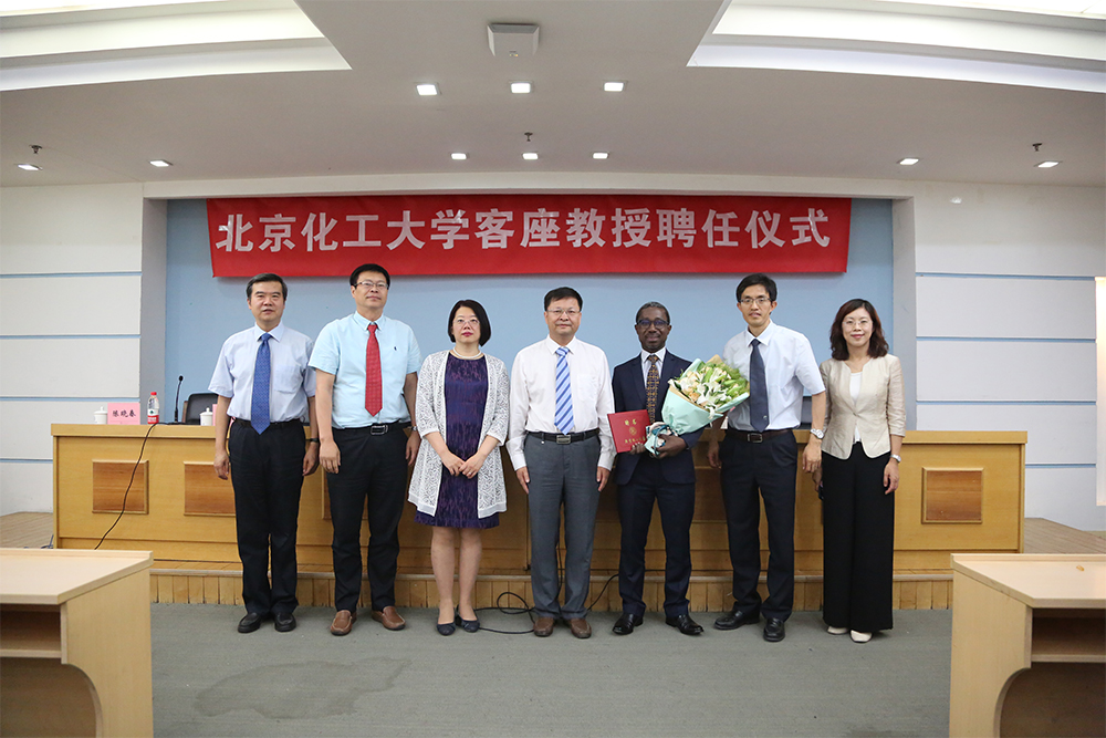 邱介山院长介绍了Thokozani Majozi教授的个人履历、研究方向及其主要科研成果。谭天伟校长为Thokozani Majozi教授颁发聘书,学生代表为Thokozani Majozi教授佩戴北京化工大学校徽并献花。