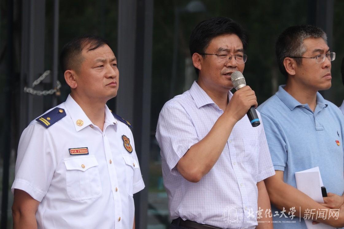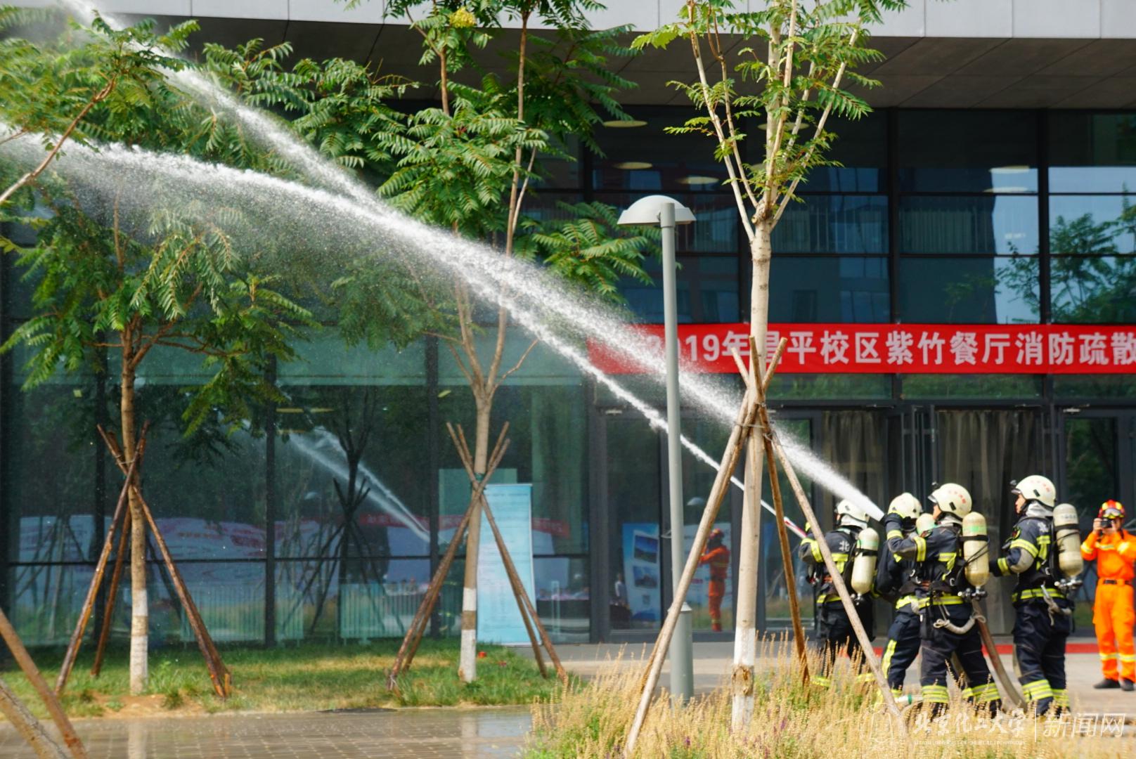 7月10日下午,为深入贯彻落实习近平总书记坚持底线思维着力防范化解重大风险重要指示精神和视察北京时的重要讲话精神,全力维护首都安全稳定,保障新中国成立70周年庆祝活动消防安全,我校在昌平校区紫竹餐厅开展消防疏散演练。校党委副书记、演练总指挥宋来新,昌平消防支队副支队长高卿、警官张浩,北京市公安局内保局文保支队警官韩玉安,北区办主任苏建茹、保卫处处长王小健、国有资产与实验室安全管理处处长李文中,学工办副主任李浚,北区办副主任孙忠博,后勤保障部副部长***,新校区建设办公室副主任兰万里,保卫处副处长庞然、杜昌顺以及各学院安全工作负责人和学生工作负责人出席演练。昌平消防救援支队两辆消防车和10名消防官兵、昌平校区师生员工700余人参加了此次演练。演练由保卫处副处长姚望主持。