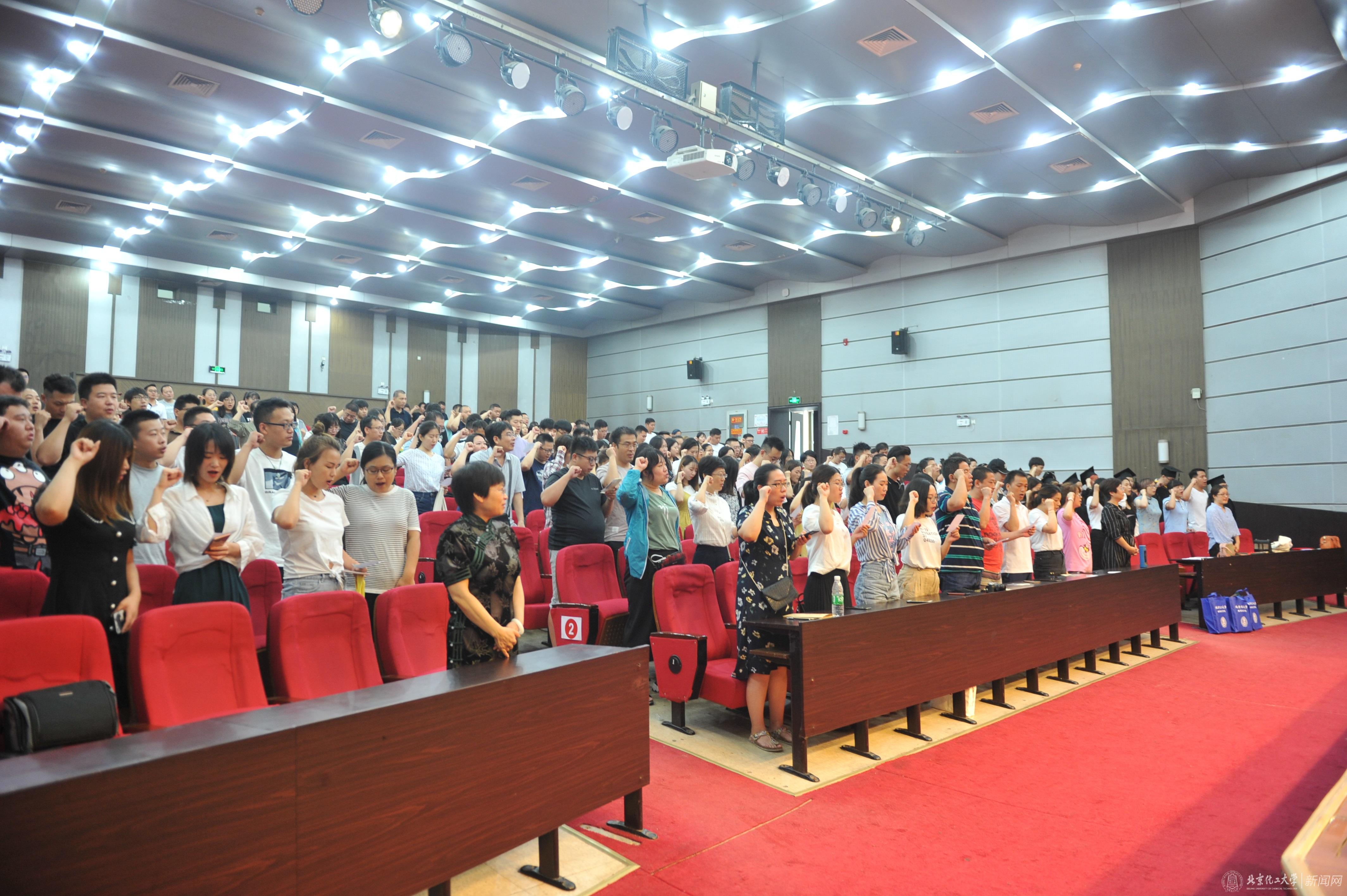 最后,全体毕业生庄严宣誓:我将恪守化大校训,秉承化大精神;铭记恩师教诲,不忘母校嘱托;肩负时代使命,共兴强盛中华。精诚奉献、务实创新、自强不息、激流勇进、知行合一、筑梦报国。用今日努力铸就明朝辉煌。