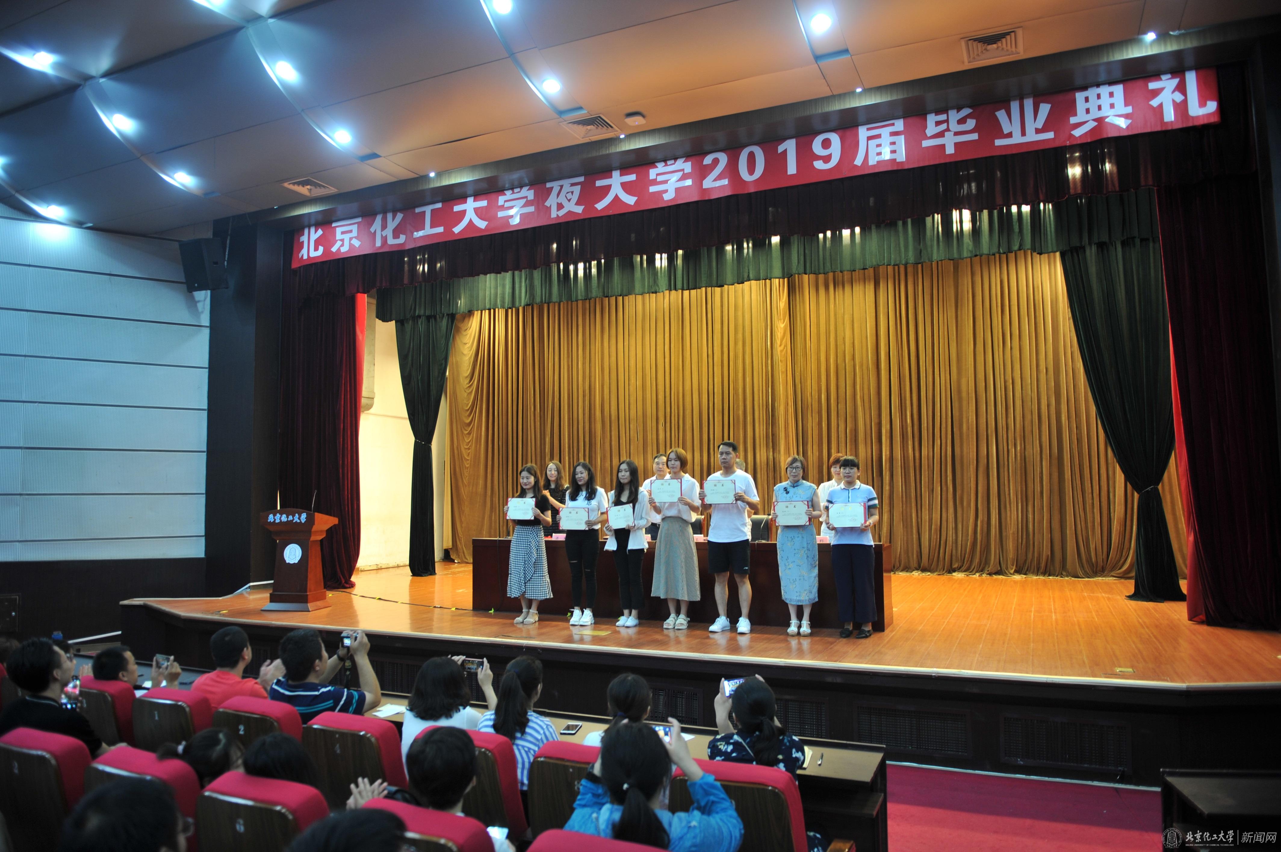 典礼上王玉院长宣读了全体毕业生名单和获得学士学位证书的学生名单,并向大家表示衷心的祝贺。毕业生代表张倩说:“两年半的时间,很多记忆将成为我们生命中最为珍贵的收藏。我们紧张而高效地学习,艰苦而顽强地拼搏,合理安排好工作、学习、家庭的关系,最终得到今天的收获。这几年,我们目睹了北京化工大学的蓬勃发展,我们亲历了东校区的翻新和昌平校区的投入使用,我们与全校师生共庆母校六十华诞。恰逢新中国成立70年,让我们带着那份对社会的责任感,努力成为更好的自己”。教师代表韩洁也表达了对毕业生的不舍和期望:希望同学们在学习上持之以恒,在岗位上做事以敬,在行为方式上待人以诚。