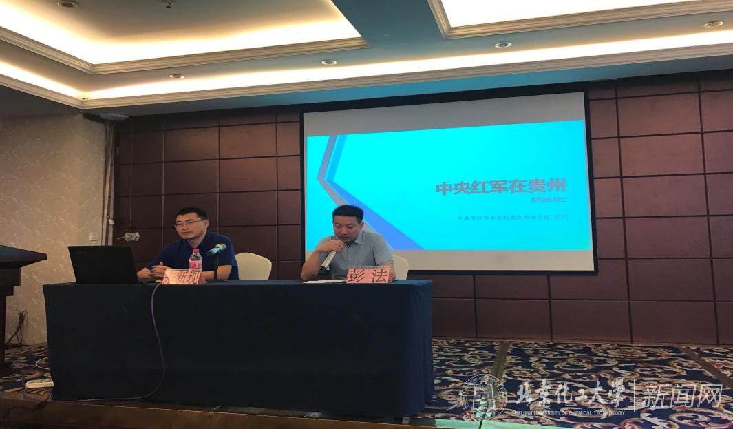贵州师范大学作为教育部全国高校思想政治理论课教师社会实践研修基地,实践研修通过专题教学、现场考察、体验教学、情景体验、教学研讨等多种形式进行。共有来自北京化工大学、辽宁科技大学、台州职业技术学院等院校的近80人思政课教师参加本期实践研修班。在开班仪式上,贵州师范大学马克思主义学院副院长彭法教授对各位老师的到来表示欢迎,并介绍了基地及贵州师大马克思主义学院的基本情况。我校马克思主义学院副院长于文博作为培训班长单位做发言。