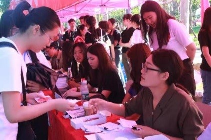 另外,现场还准备了特色展板;设计了印有新生姓名、具有互动感的背喷,吸引了一批新生和家长驻足合影。