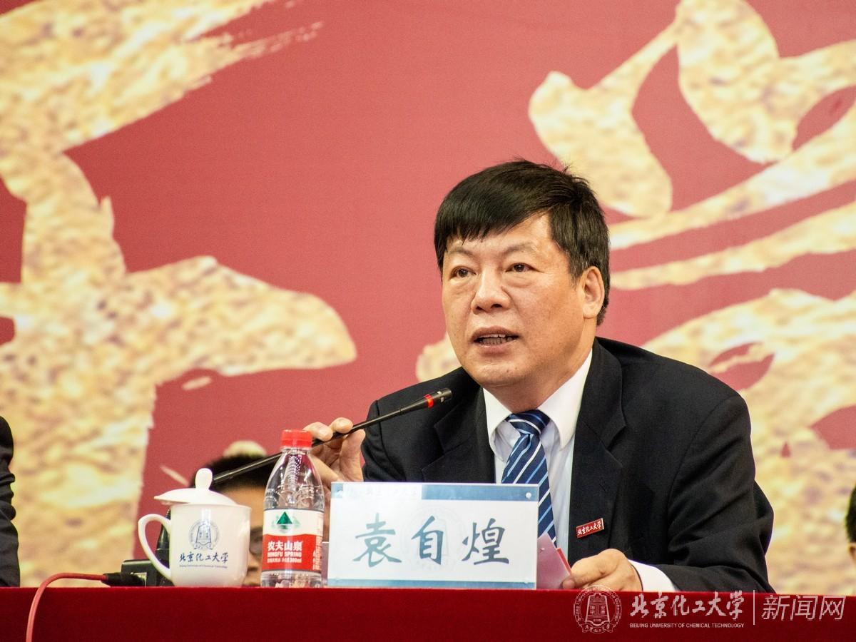袁自煌指出,在举国上下喜迎中华人民共和国成立70周年之际,在学校刚刚胜利召开第十一次党代会,擘画了改革发展的宏伟蓝图,全面开启新时代、新甲子奋斗征程之时,2019级新生朝气蓬勃、青春洋溢地加入到了北化这个大家庭,成为了北化的新生力量,他首先代表学校对同学们表示诚挚的祝贺和热烈的欢迎。他说,北京化工大学在60余年的发展历程中,始终坚持社会主义办学方向,始终坚持全面贯彻党的教育方针,始终坚持为党育人、为国育才的初心使命,始终秉承“宏德博学化育天工”的校训精神,培养了一代代“宏德博学,能力卓越,视野宽广,担当责任,奉献国家,服务人民”的社会主义建设者和接班人。