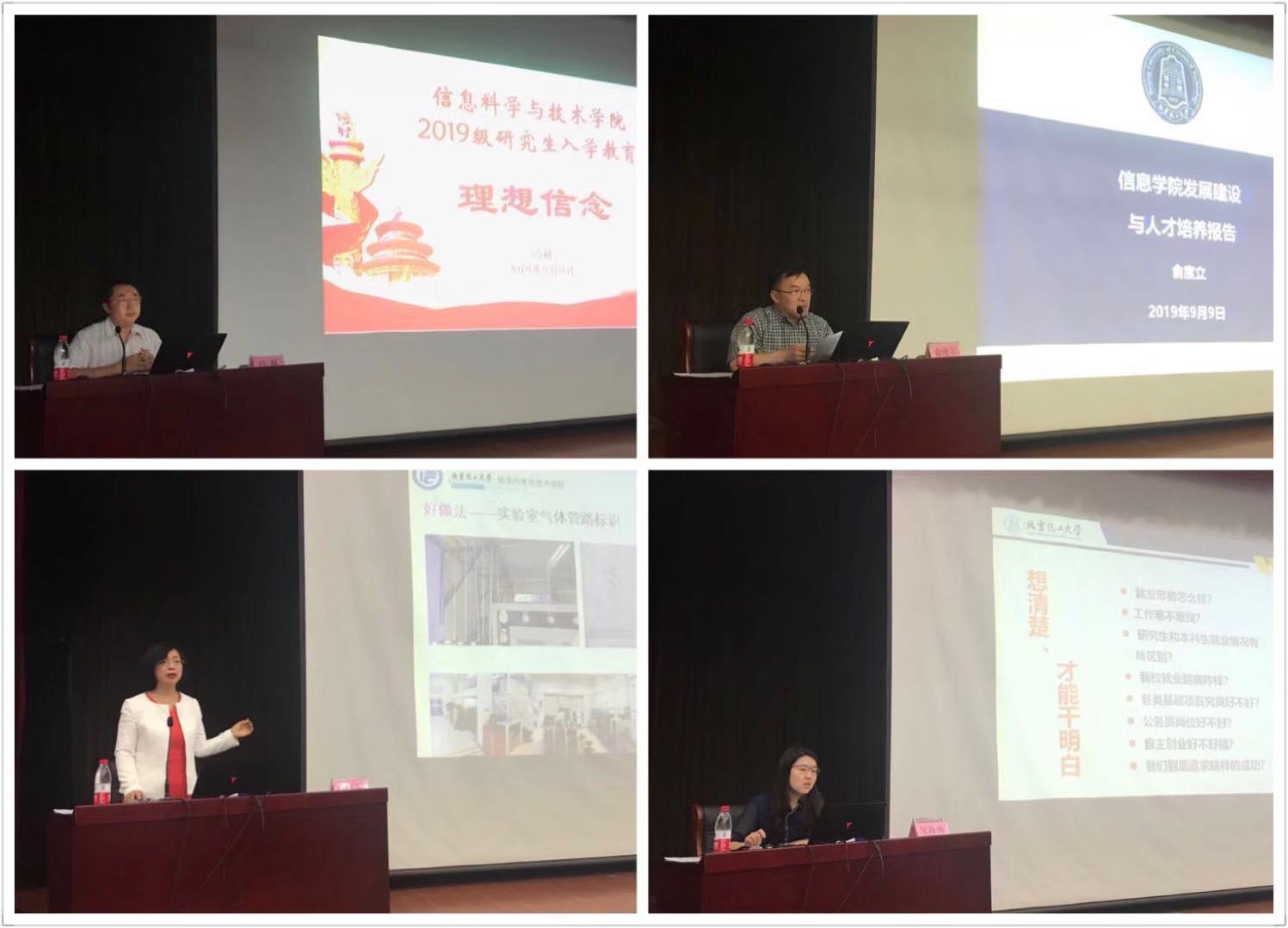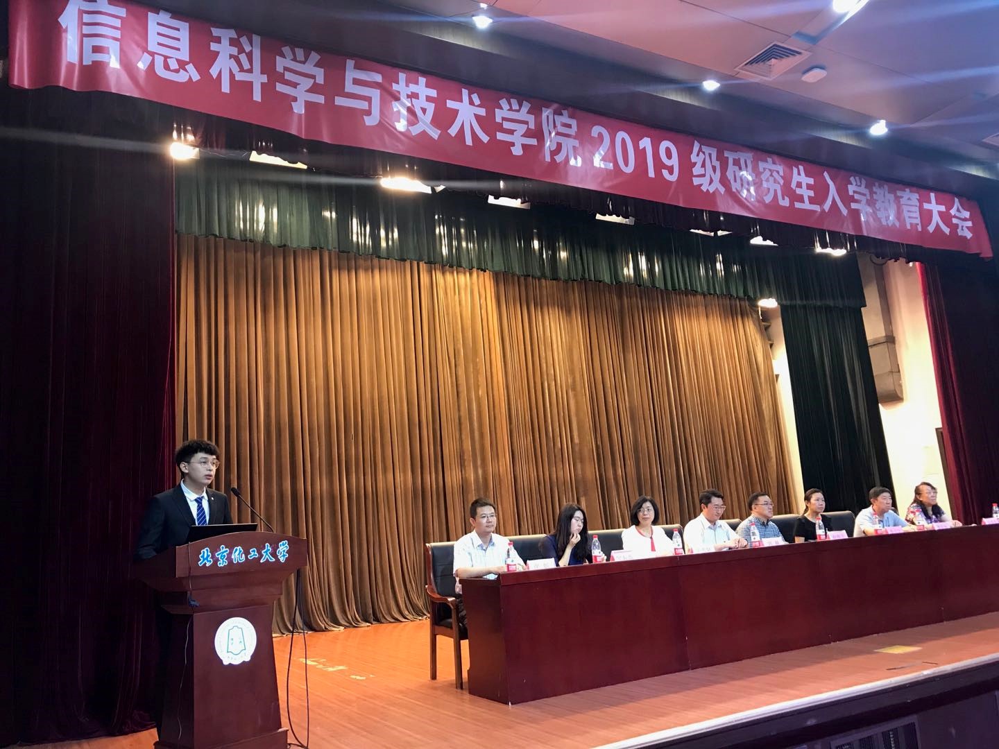 9月9日上午,信息科学与技术学院于科学会堂召开学院2019级研究生入学教育大会。学院党委书记冯赫、院长俞度立,学院党委副书记邹海燕,副院长汪雪琴、李大字以及导师代表李宏光、赵瑞莲、张帆出席大会。大会由冯赫主持。
