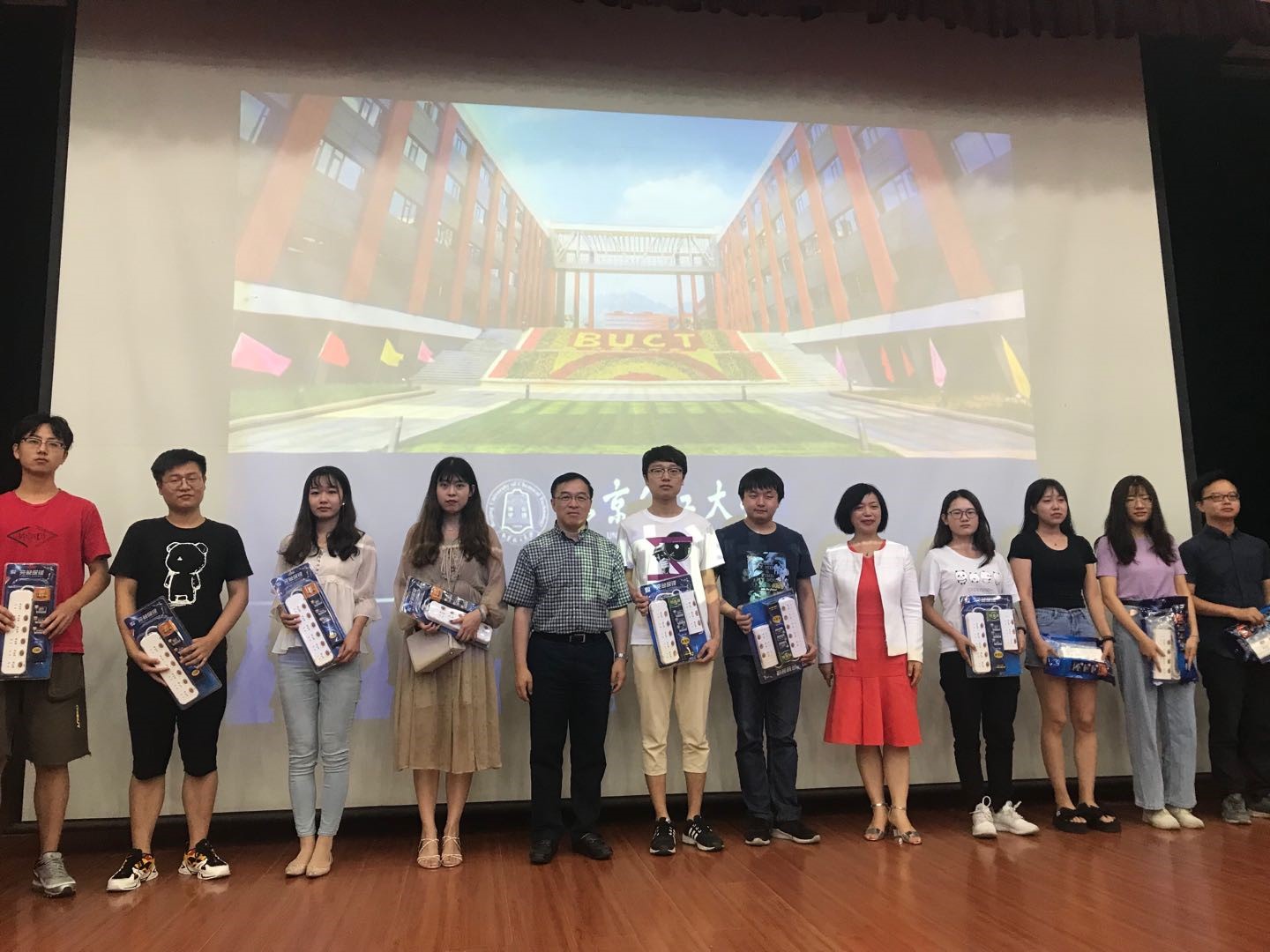 大会第三阶段,俞度立院长和汪雪琴老师共同为实验室安全评比获奖的学生代表颁发了奖品。