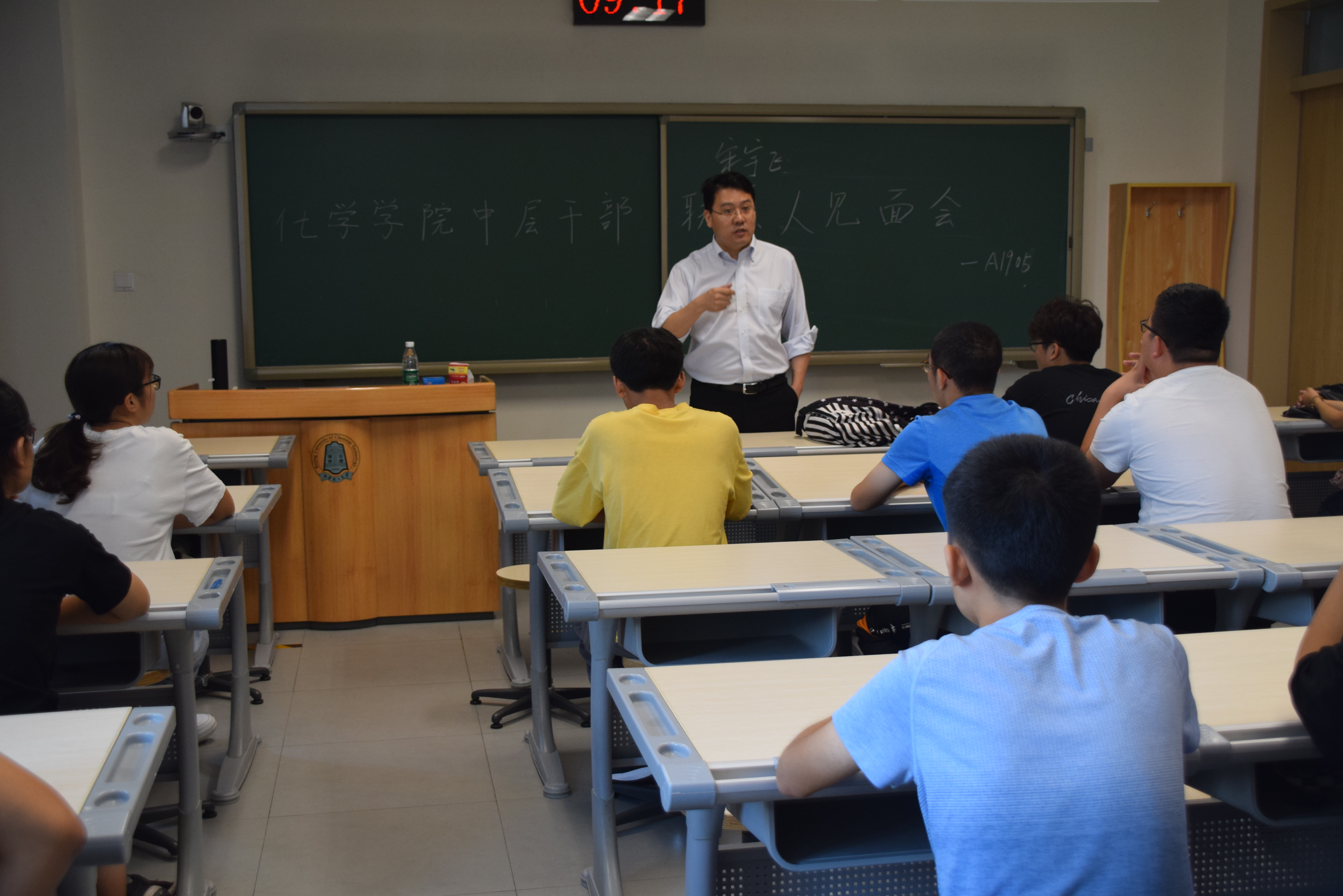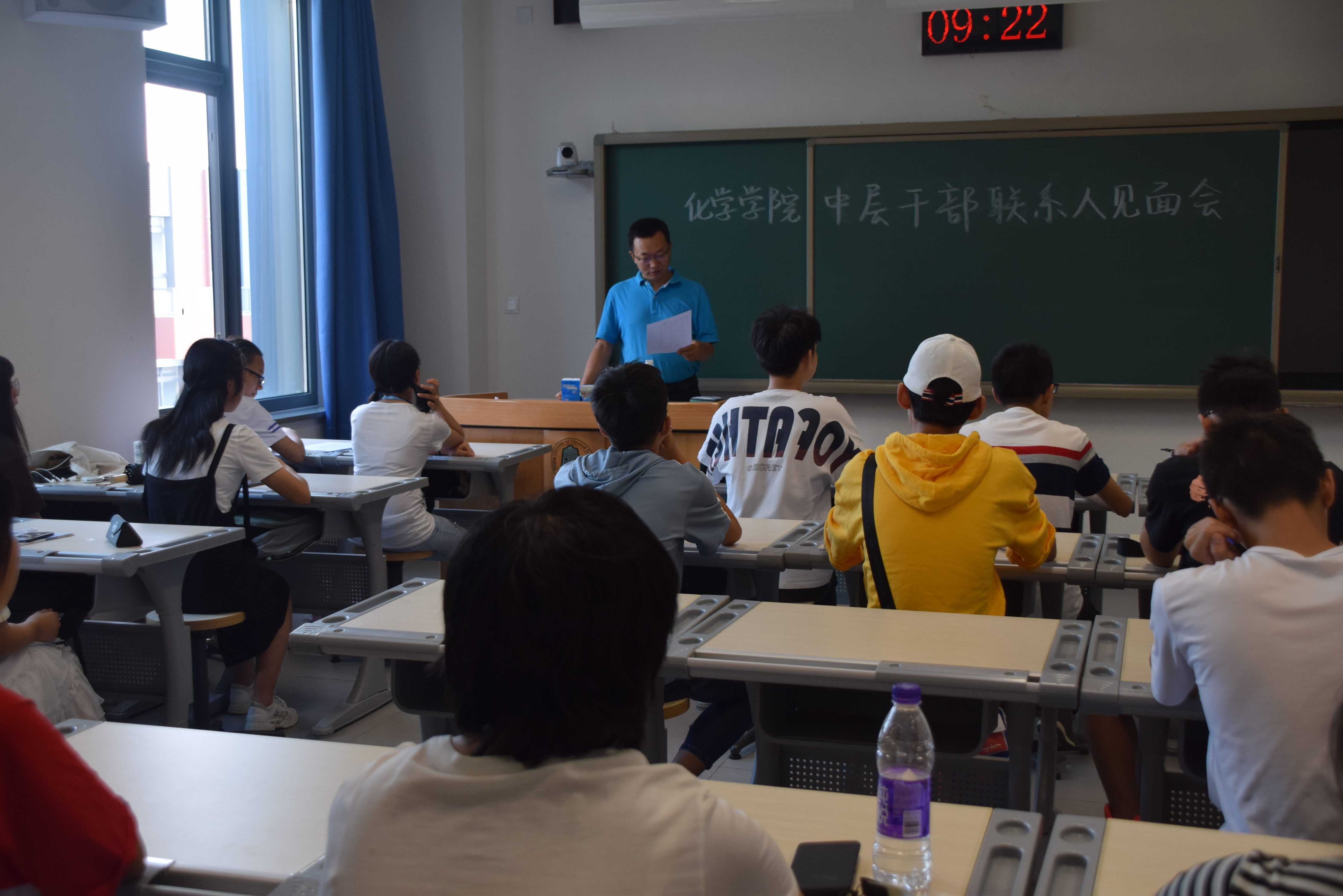 为进一步贯彻落实全国教育大会、全国高校思想政治工作会议、学校思想政治理论课教师座谈会精神,推动学校中层领导干部落实立德树人根本任务,搭建中层干部与学生沟通交流的平台,2019年9月化学学院组织开展了中层干部联系人与新生见面交流会。来自党委办公室、人事处、研究生院、科学技术发展研究院、北区办、图书馆、化学学院等多个部门的11名中层干部联系人参加此次活动。