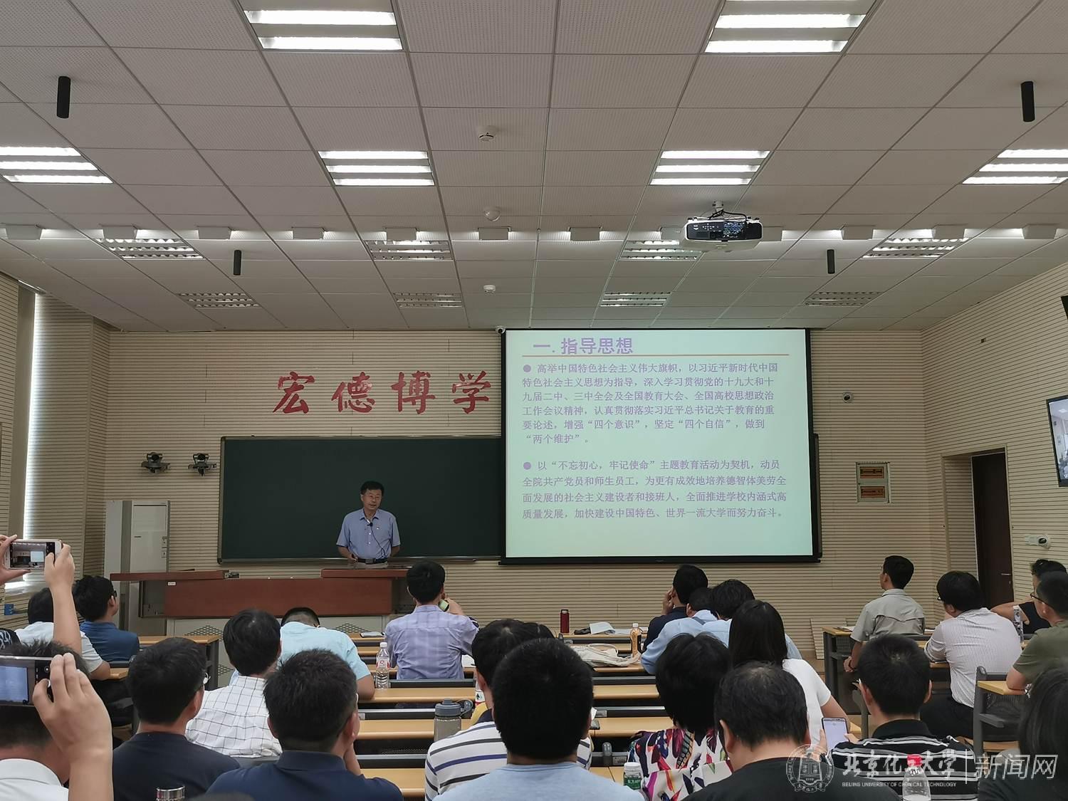 邵晓红指出按照学校党委的要求,主题教育要把深入学习贯彻习近平新时代中国特色社会主义思想作为根本任务,把握“守初心、担使命,找差距、抓落实”的总要求,坚持“抓思想认识到位、抓检视问题到位、抓整改落实到位、抓组织领导到位”四个到位,努力实现“理论学习有收获、思想政治受洗礼、干事创业敢担当、为民服务解难题、清正廉洁作表率”的目标。主题教育要同贯彻落实学校第十一次党代会确定的目标任务和学院重点工作任务结合起来,强调把学习教育、调查研究、检视问题、整改落实贯穿主题教育全过程。