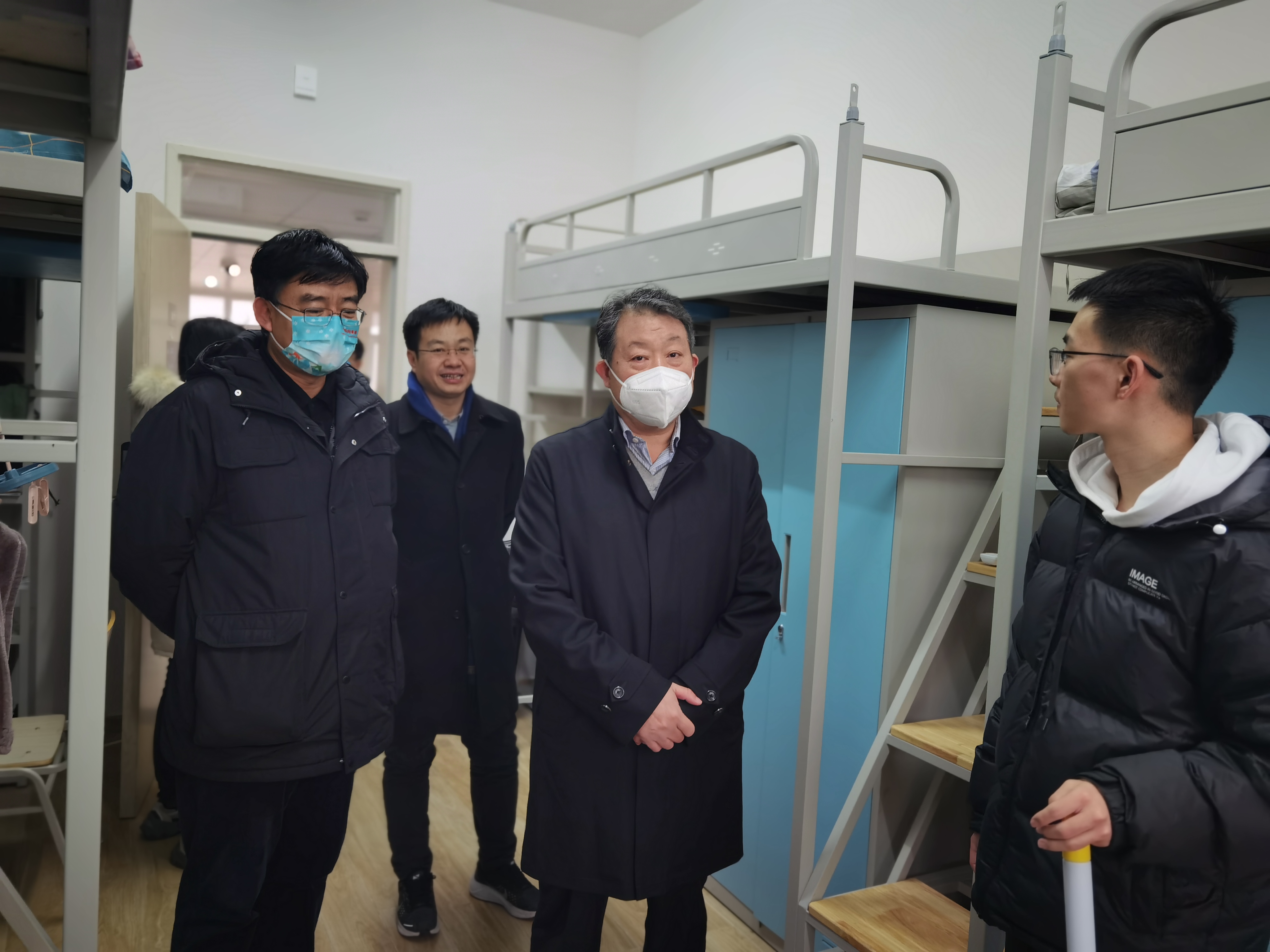 在校医院、健康驿站,刘贵芹听取了学校新冠病毒感染和突发疾病应急处置流程,现场检查了发热门诊设置情况、药品储备情况和健康驿站管理情况,他强调要严格落实学校党委关于春季学期开学暨疫情防控相关工作要求和部署,有效防范大规模聚集性疫情,做到“保健康、防重症”,确保师生员工健康和校园安全稳定。